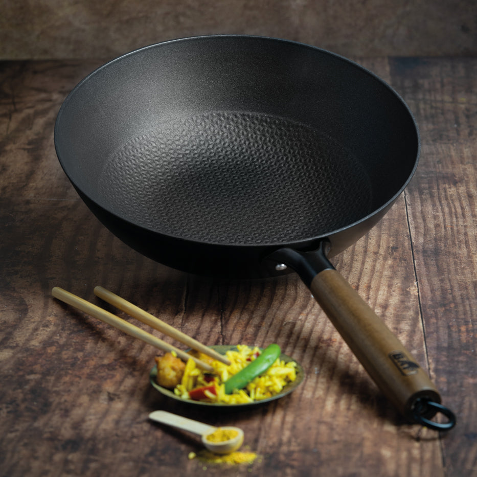 Handgeschmiedete Wokpfanne 24cm Mit Holzdeckel - Eisern & Unbeschichtet Für Alle Herdarten