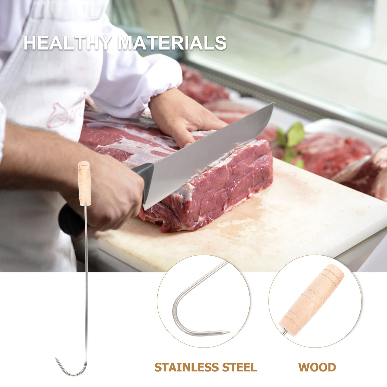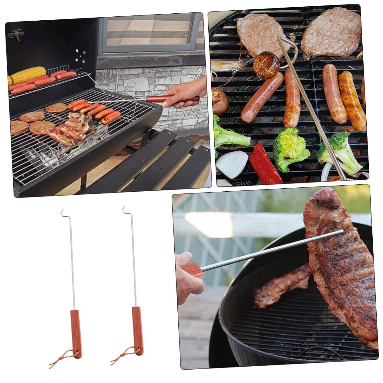 OFFSCH Fleisch Wendehaken Mit Holzgriff - BBQ Grillhaken Für Steak & Grillgut