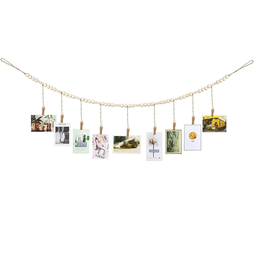 Srvauyea Fotoseil Mit Holzklammern - 110cm Bilderwand Mit 18 Clips, Boho-Deko Für Fotos & Postkarten