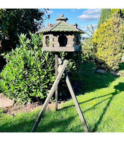 Dieses wunderschöne Vogelhaus in riesiger XXL-Größe ist ein echter Blickfang in jedem Garten! Mit 60cm Dachdurchmesser und 40cm Höhe bietet es reichlich Platz für viele Vögel gleichzeitig. Das naturbelassene Holzschindeldach sieht nicht nur toll aus, sondern ist auch absolut wetterfest und langlebig. Die praktische Befüllung erfolgt von oben durch den abnehmbaren Schornstein-Deckel - super einfach und sauber. Handgefertigt und bereits fertig montiert geliefert, kannst du es sofort aufstellen und verwenden. Perfekt für Sonnenblumenkerne und andere Vogelfutter-Sorten. Deine gefiederten Freunde werden begeistert sein! Ob auf einem Ständer, an einem Baum oder auf der Terrasse - dieses Vogelhaus bringt Leben in deinen Garten und bietet dir stundenlange Freude beim Vögel-Beobachten. Ein Qualitätsprodukt, das viele Jahre halten wird!