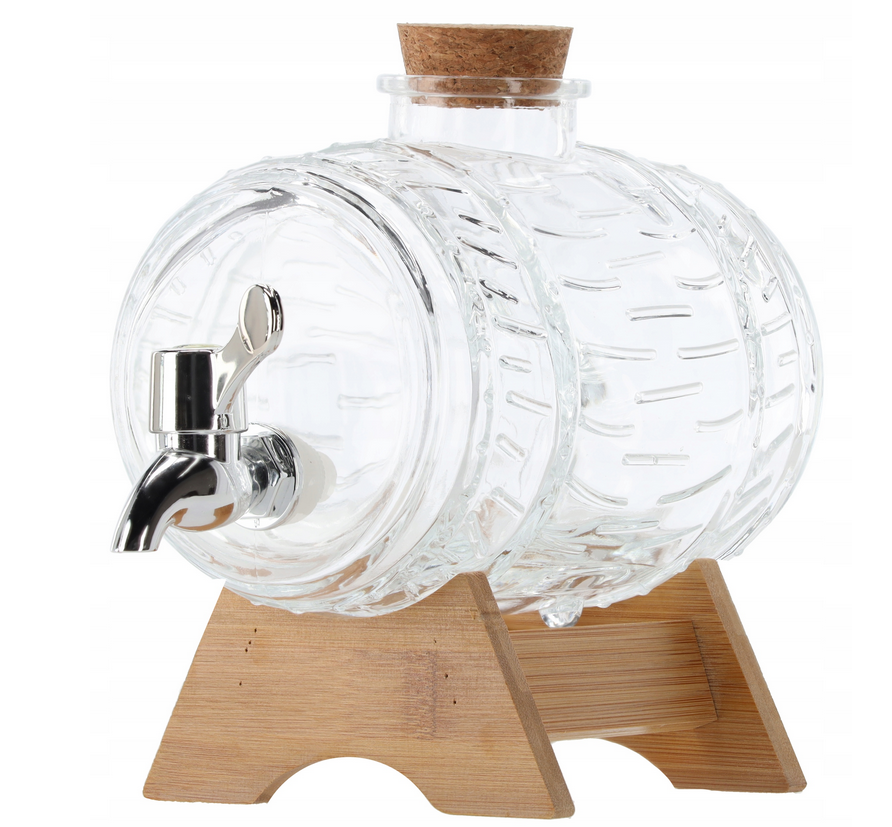 Lilawelt24 Weinfass Aus Glas 5L Mit Holzständer & Zapfhahn - Eleganter Getränkespender