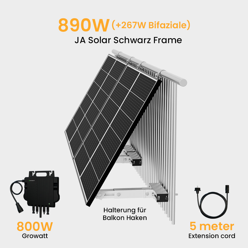 Powerness Balkonkraftwerk 880Wp Komplettset Mit JASolar Modulen & Growatt Wechselrichter
