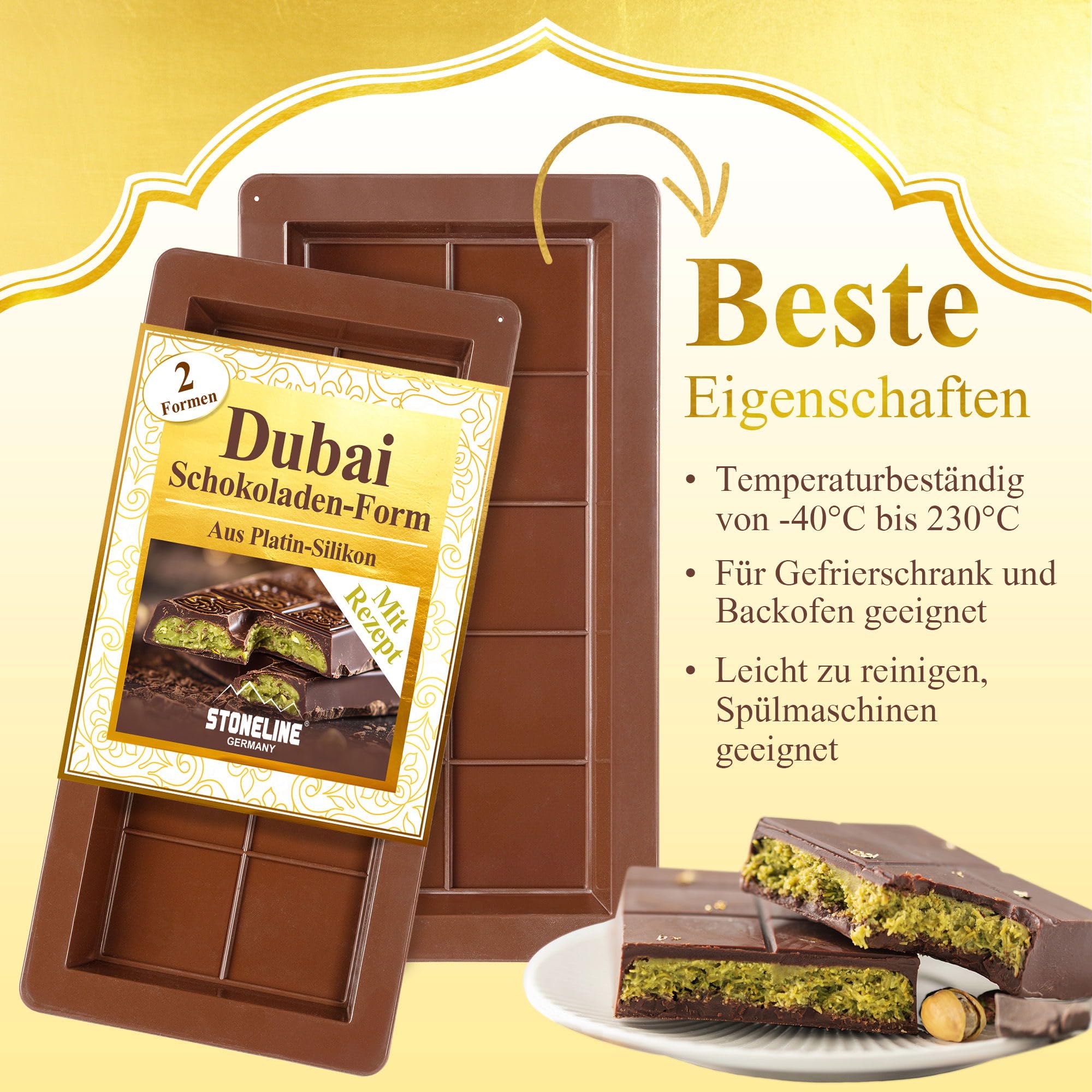 Schokoladen-Fans aufgepasst! Mit dieser STONELINE Form macht ihr eure eigene Schokolade - total einfach und mega lecker! Mit integrierter Kühlung - einfach ins Gefrierfach legen und die Schokolade härtet super schnell. Antihaft-beschichtet - die Schokolade löst sich perfekt. Maße: 22,5 x 14 x 3,5 cm - für etwa 200g Schokolade. Aus BPA-freiem Kunststoff und Edelstahl - lebensmittelecht und geschmacksneutral. Perfekt für Bruchschokolade - einfach umdrehen und knacken! Super für Kindergeburtstage, Geschenke oder einfach zum Selber-Naschen. Einfach Schokolade schmelzen, in die Form gießen, mit Nüssen oder Früchten verzieren und abkühlen lassen. Leicht zu reinigen - mit warmem Wasser und Spüli. Macht jede Party zum Highlight - kreativ, lecker und persönlich! Ob für Weihnachten, Geburtstage oder einfach so - Schokolade selber machen macht einfach Spaß!