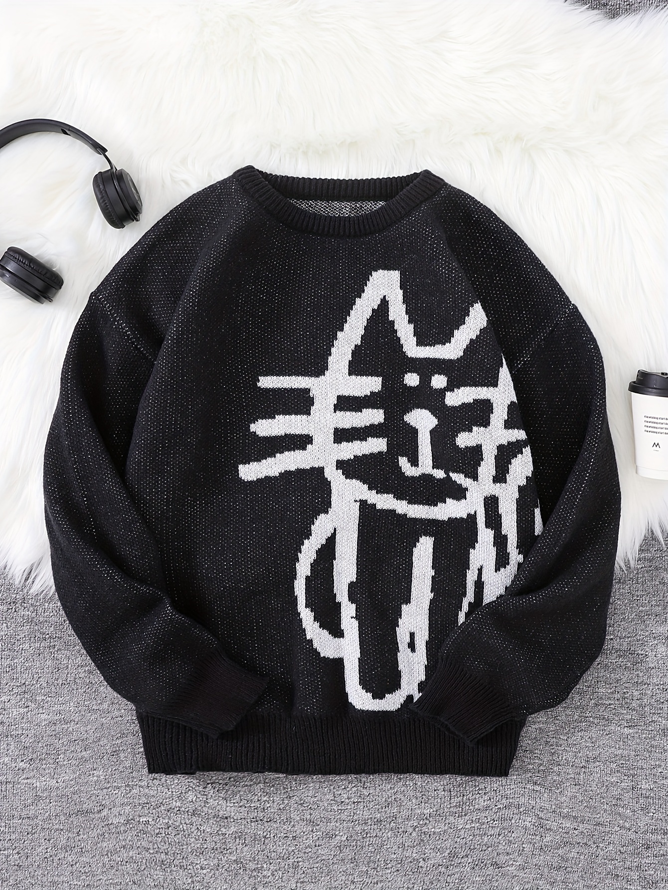 Puramala Herren Sweatshirt Mit Katzen-Print - Bequemer Pullover Für Jeden Tag