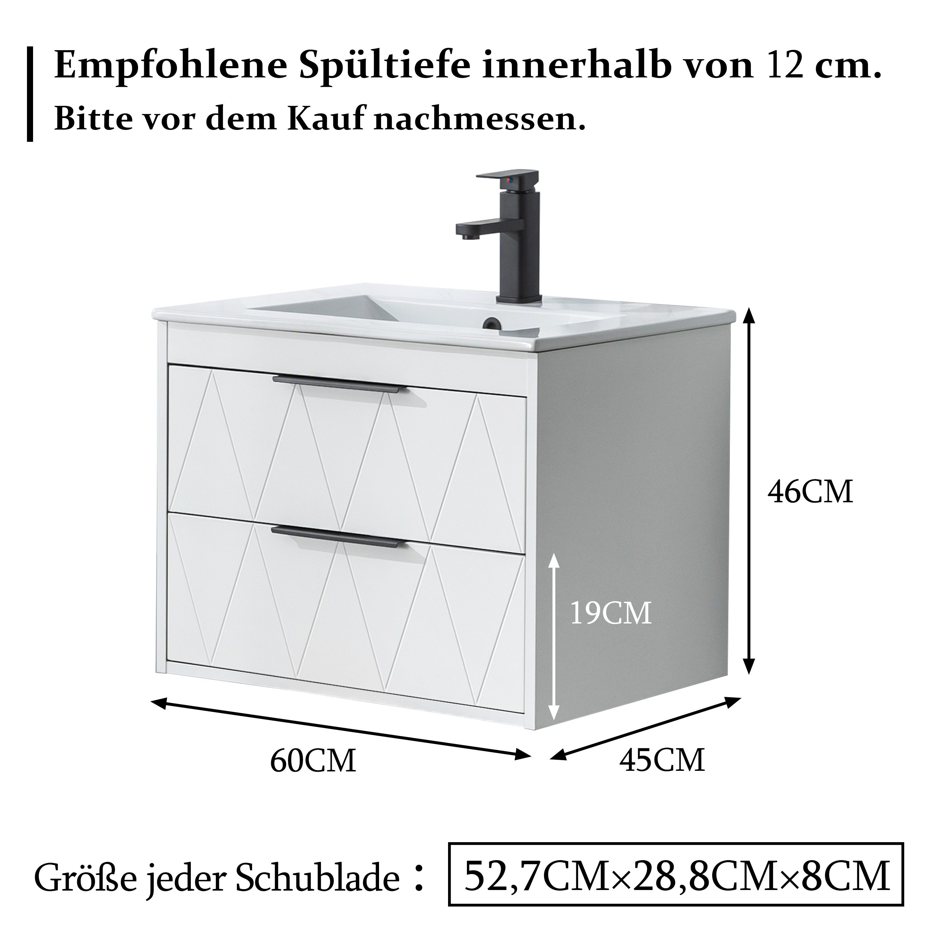 UEV Waschtisch 60cm Mit Keramikbecken & Soft-Close Schubladen - Moderner Badunterschrank