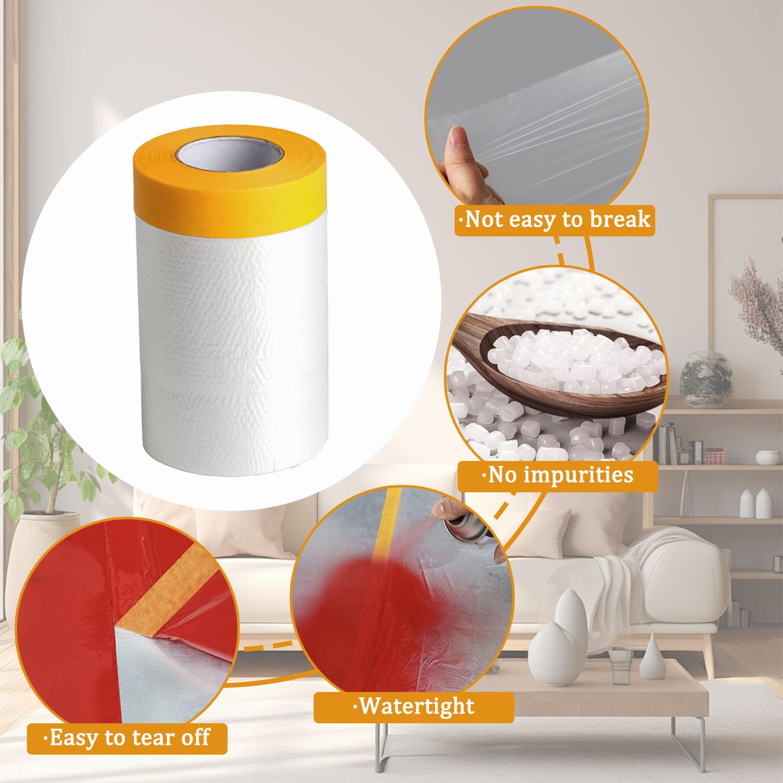 Abdeckfolie Set 4 Rollen - Mit Klebeband Für Malerarbeiten & Renovierung