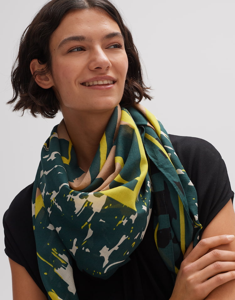 OPUS Damen Satin-Tuch Mit Krawattenmuster - Coal Blue Printtuch Für Modische Accessoires