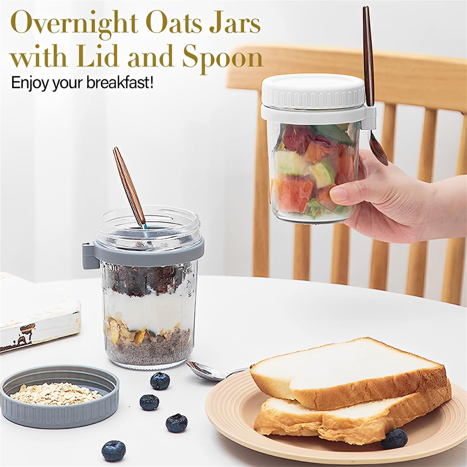 4 Overnight Oats Gläser 16oz Mit Löffel - Auslaufsicher Für Meal Prep & Unterwegs