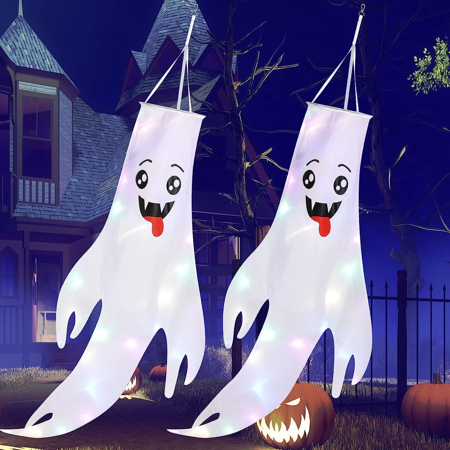 LIBRNTY Halloween Geist Windsäcke Mit LED - 2-teilige Deko Für Garten & Party