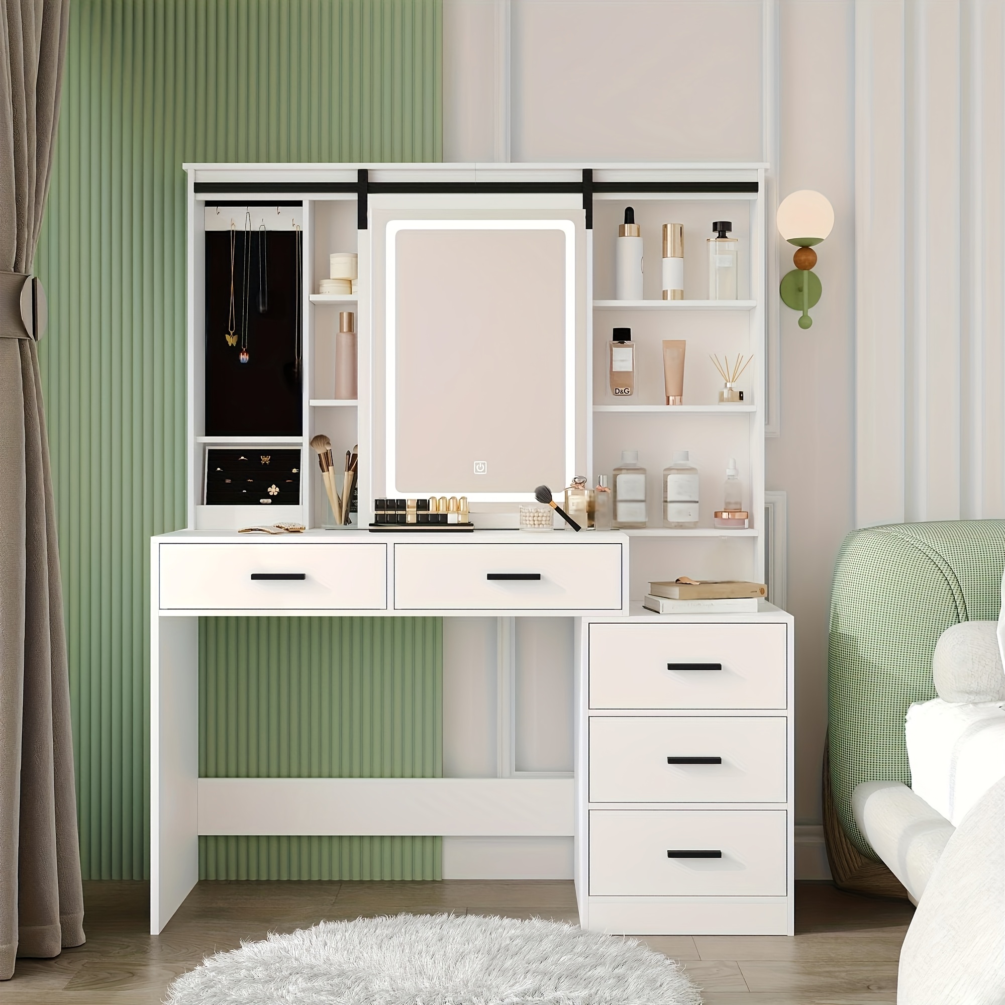 Schminktisch Mit LED-Beleuchtung - 9 Schubladen & Steckdosen 110cm