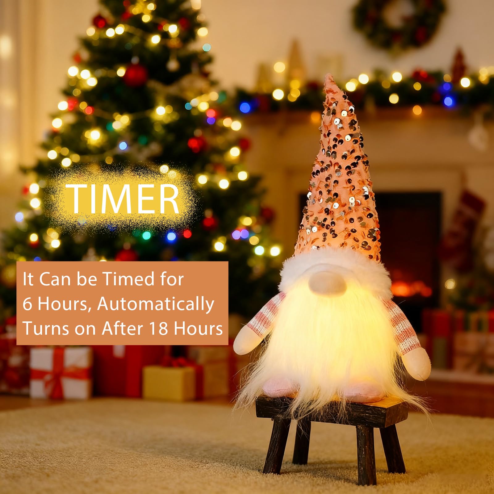 2 Weihnachtswichtel Mit LED-Beleuchtung & Timer - Skandinavische Weihnachtsdeko 30cm