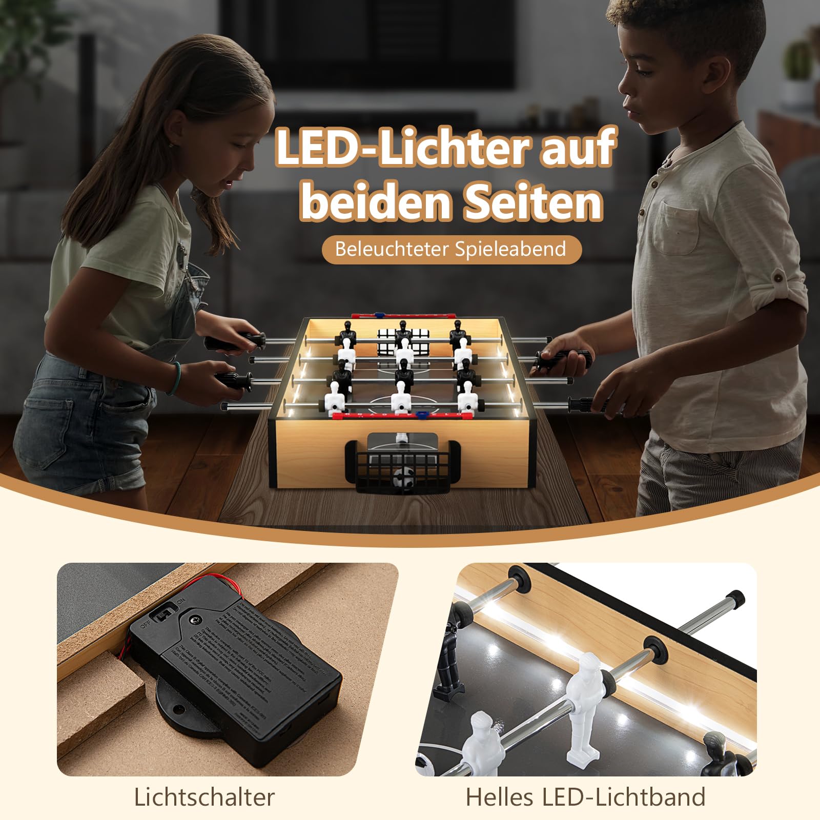 DREAMADE Mini Kickertisch Mit LED-Beleuchtung - Tischfußball Für Kinder & Erwachsene