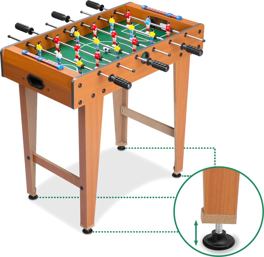Kicker-Spaß für die ganze Familie! Dieser coole Mini-Kickertisch mit LED-Beleuchtung macht jede Party zum Hit. Mit 59x51x8cm ist er super kompakt und passt in jedes Wohnzimmer oder Kinderzimmer. Die bunten LED-Lichter an beiden Seiten sorgen für eine mega Stimmung - benötigen 3 AA-Batterien (nicht im Lieferumfang). Im Set sind 12 realistische Spieler, 2 Bälle, rutschfeste Griffe und manuelle Zähler enthalten. Die Metallstangen laufen super smooth und die Griffe liegen gut in der Hand. Perfekt für Kindergeburtstage, Spieleabende oder einfach so zum Spaß haben. Fördert die Hand-Augen-Koordination und macht einfach Laune! Leichtes Gewicht (1,6kg) - kann easy verstaut werden. Einfach aufbauen und loskicken! Das perfekte Geschenk für alle, die Action und Spielspaß lieben.