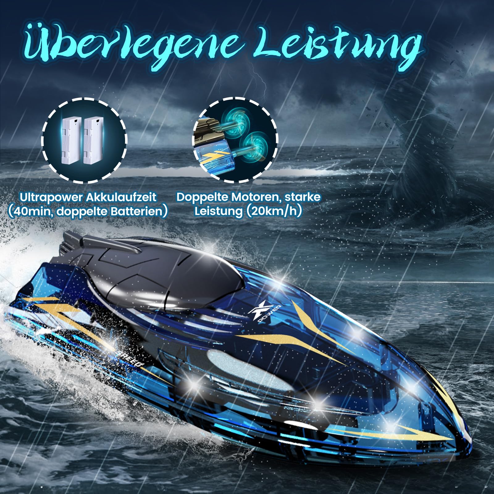JONRRYIN Ferngesteuertes Boot - RC Boot Mit LED-Licht 2,4 GHz