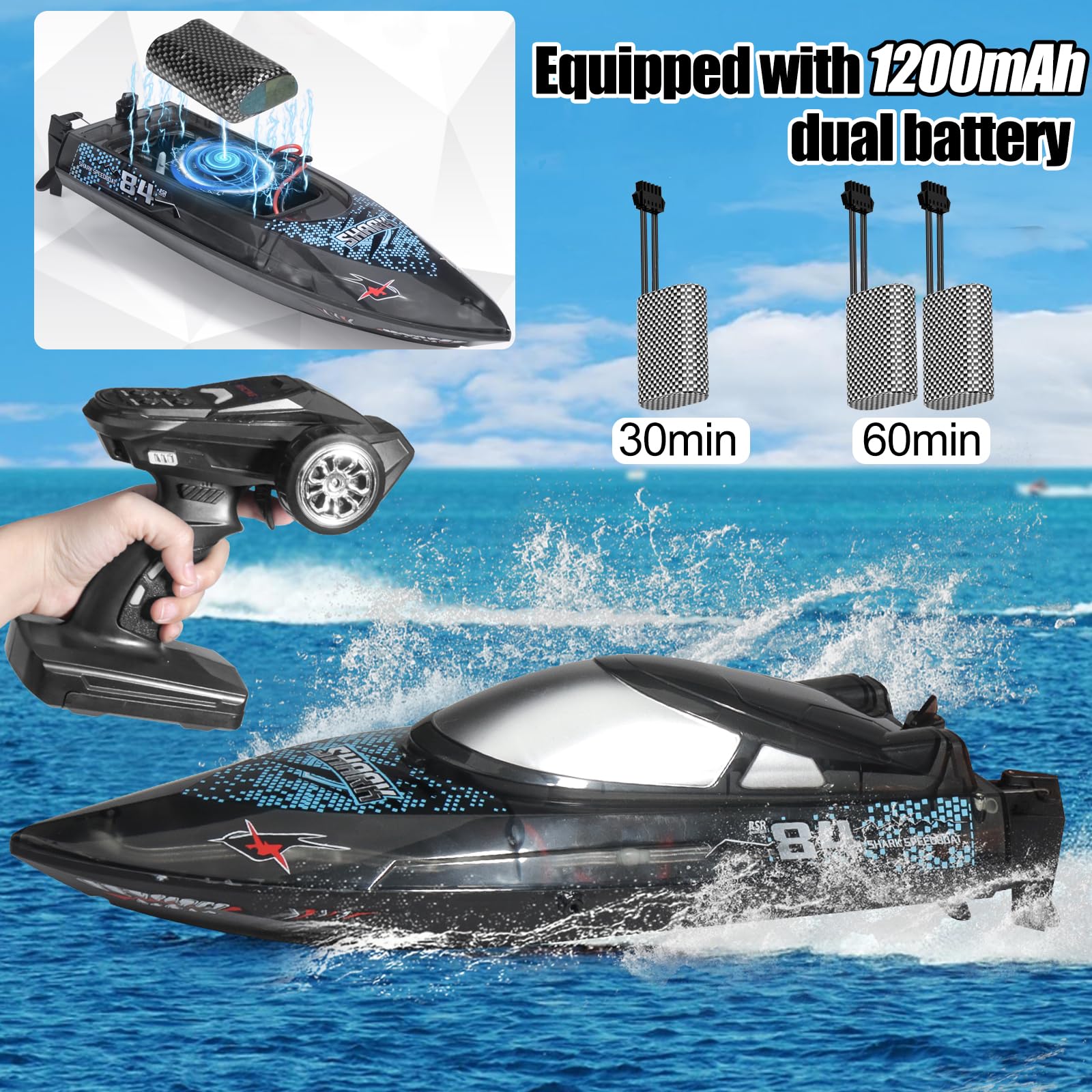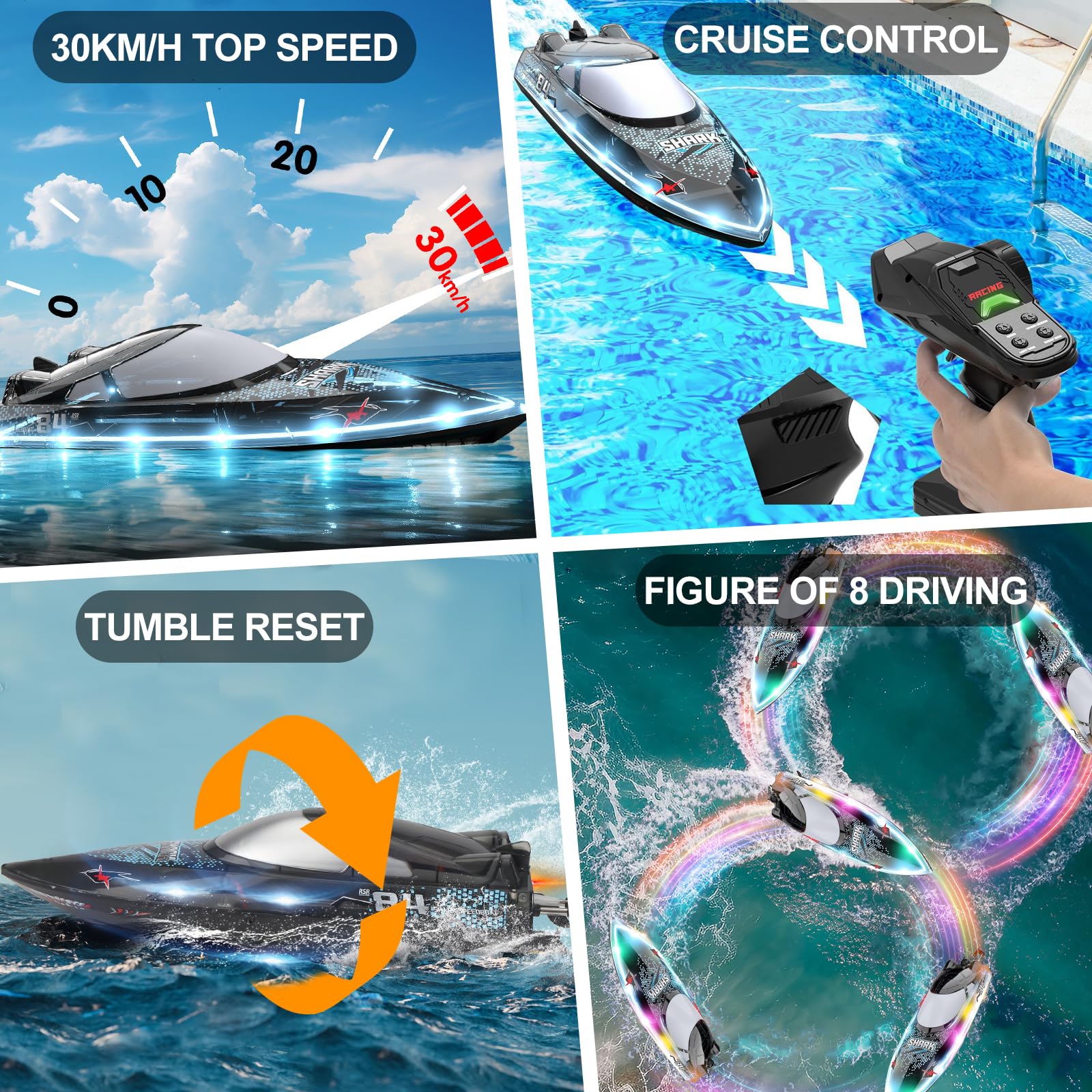 RC Haiboot Mit LED Lichtern - 30km/h Ferngesteuertes Boot, 2,4 GHz Wasserspielzeug