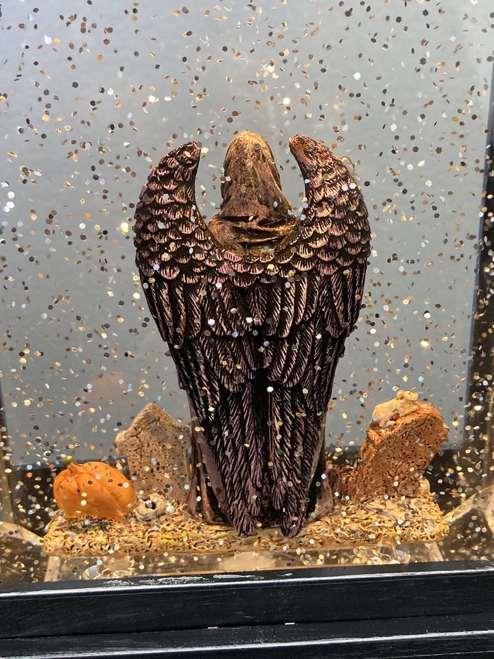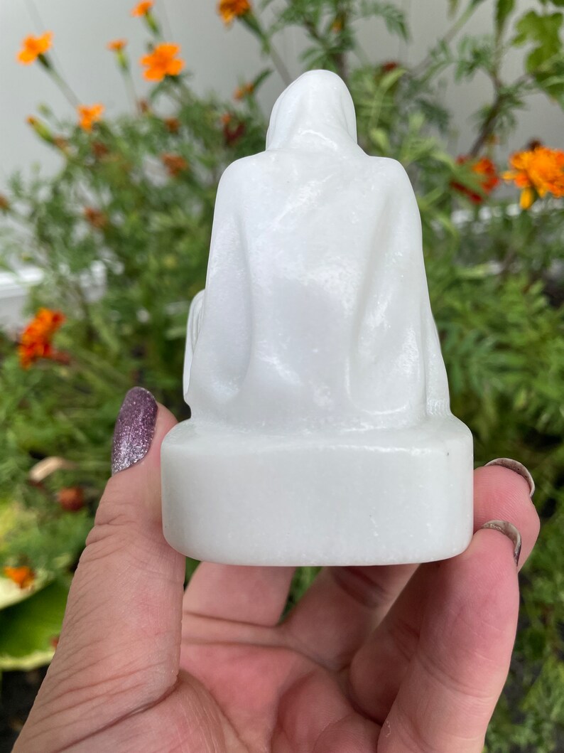 Mensch, diese Todesgott-Statue ist ja mal richtig gruselig-cool! Der Sensenmann hält eine Kristallkugel, in der blaue Glitzer wirbeln - sieht aus wie magische Energie! Maße: 15cm hoch, 9cm breit - perfekt fürs Regal oder als Tischdekoration. Aus hochwertigem Harz und Glas gemacht, mit super Details in der Kapuze und den Falten des Mantels. Wenn's dunkel wird und die Kugel leuchtet, tanzen Fledermäuse im Inneren - totale Grusel-Atmosphäre! Ideal für Halloween, Gothic-Fans oder als Gesprächsstarter im Wohnzimmer. Kann auch als Schneekugel verwendet werden - einfach schütteln und den magischen Effekt genießen. Ein echt besonderes Geschenk für alle, die es etwas düsterer mögen. Deine Gäste werden staunen, was für eine coole Deko du da hast!