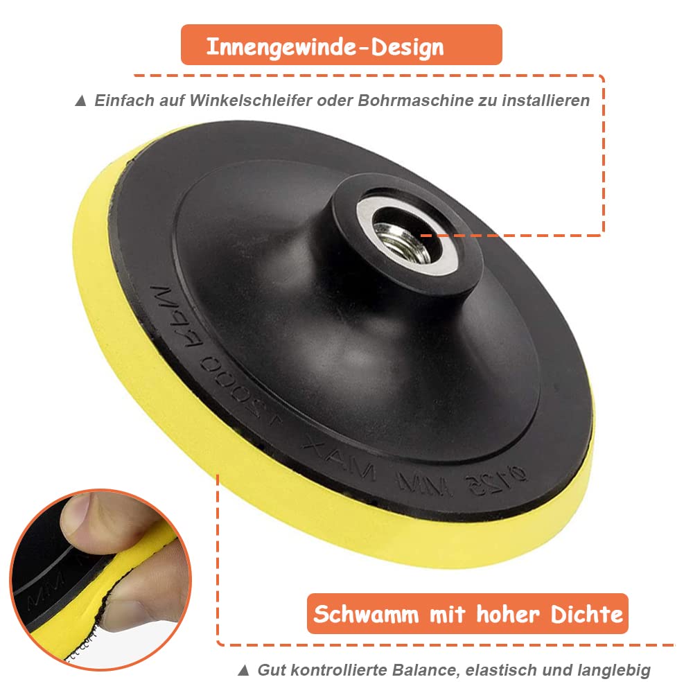 2-teiliges Polierpad Set 125 Mm Mit M14 Adapter - Klett Schleifteller Für Winkelschleifer & Bohrmaschine
