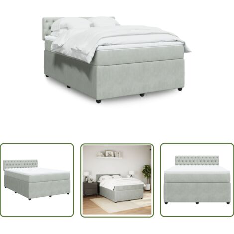 VidaXL Boxspringbett 140x200cm - Mit Matratze & Topper Hellgrau