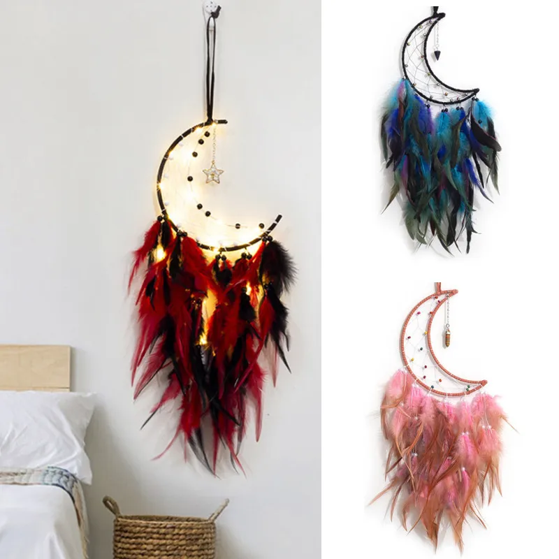 Handgefertigter Traumfänger Mit Mond & Federn - Bunte Deko Fürs Schlafzimmer