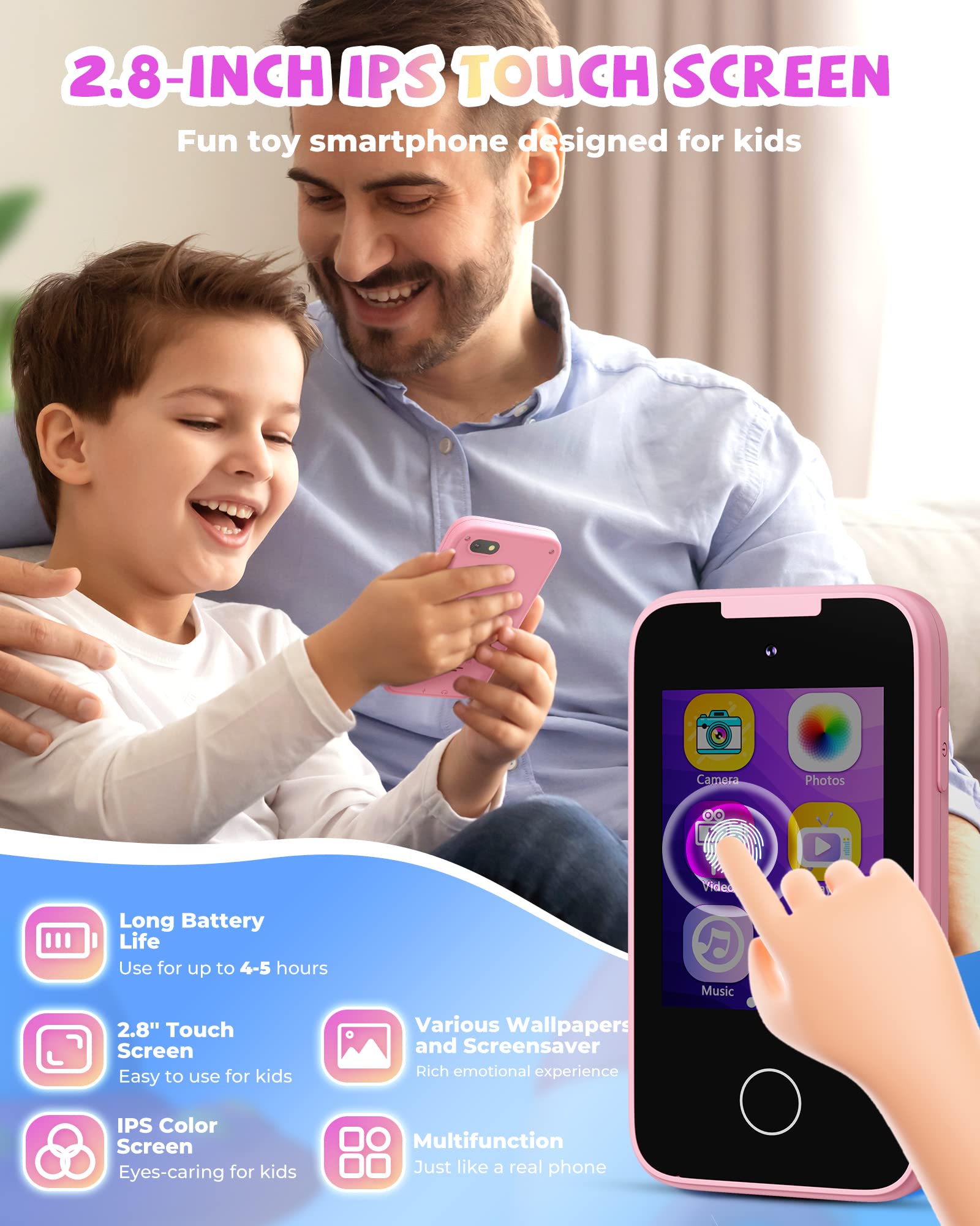 Das perfekte erste Telefon für dein Kind! Dieses süße Spielzeug-Handy von Wisylizv begeistert Kinder von 3-6 Jahren mit bunten Lichtern, fröhlicher Musik und spannenden Soundeffekten. Mit 8 verschiedenen Lernmodi fördert es spielerisch die kognitive Entwicklung und motorischen Fähigkeiten. Einfach den Netzschalter umlegen und schon kann's losgehen - das Telefon stoppt automatisch nach 5 Minuten Inaktivität, um Batterien zu sparen. Die Lautstärke lässt sich ganz easy über den Touchscreen anpassen, sodass es niemanden stört. Die blinkenden Lichter in verschiedenen Farben rund um den Rand bieten zusätzliche visuelle Stimulation. Perfekt für Rollenspiele, um Mama und Papa nachzuahmen, oder einfach zum Entdecken und Lernen. Mach deinem Kind eine Freude mit diesem pädagogisch wertvollen Spielzeug, das Kreativität und Vorstellungskraft fördert! (Batterien benötigt: 3x AA, nicht im Lieferumfang enthalten)