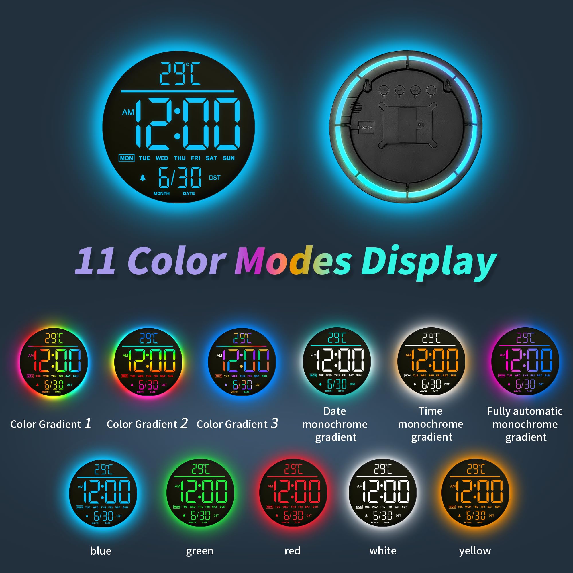 Diese digitale Wanduhr von Mee 2ou ist so viel mehr als nur eine Uhr! Mit ihrem riesigen 10-Zoll-Display und den 3,5 Zoll großen Ziffern kannst du Zeit, Datum, Wochentag und Innentemperatur selbst aus der Entfernung super leicht ablesen. Das Besondere: Die Uhr hat 11 RGB-Farben zur Auswahl und passt ihre Helligkeit automatisch an die Raumbeleuchtung an - nachts nicht zu grell, tagsüber gut sichtbar. Mit der praktischen Fernbedienung stellst du Wecker, Timer (bis 100 Minuten) und Nachtlicht bequem vom Sofa aus ein. Das 10-stufig dimmbare Nachtlicht auf der Rückseite sorgt für eine gemütliche Atmosphäre im Schlafzimmer. Der Temperatursensor misst super genau (±2°F) und aktualisiert alle 15 Sekunden - perfekt um immer das richtige Raumklima zu haben. Die Uhr läuft über Netzstrom, aber mit 2 AAA-Batterien (nicht im Lieferumfang) bleiben die Einstellungen auch bei Stromausfall erhalten. Ideal für Wohnzimmer, Schlafzimmer, Büro oder Fitnessstudio - diese Uhr ist dein neuer smarter Begleiter für jeden Raum!