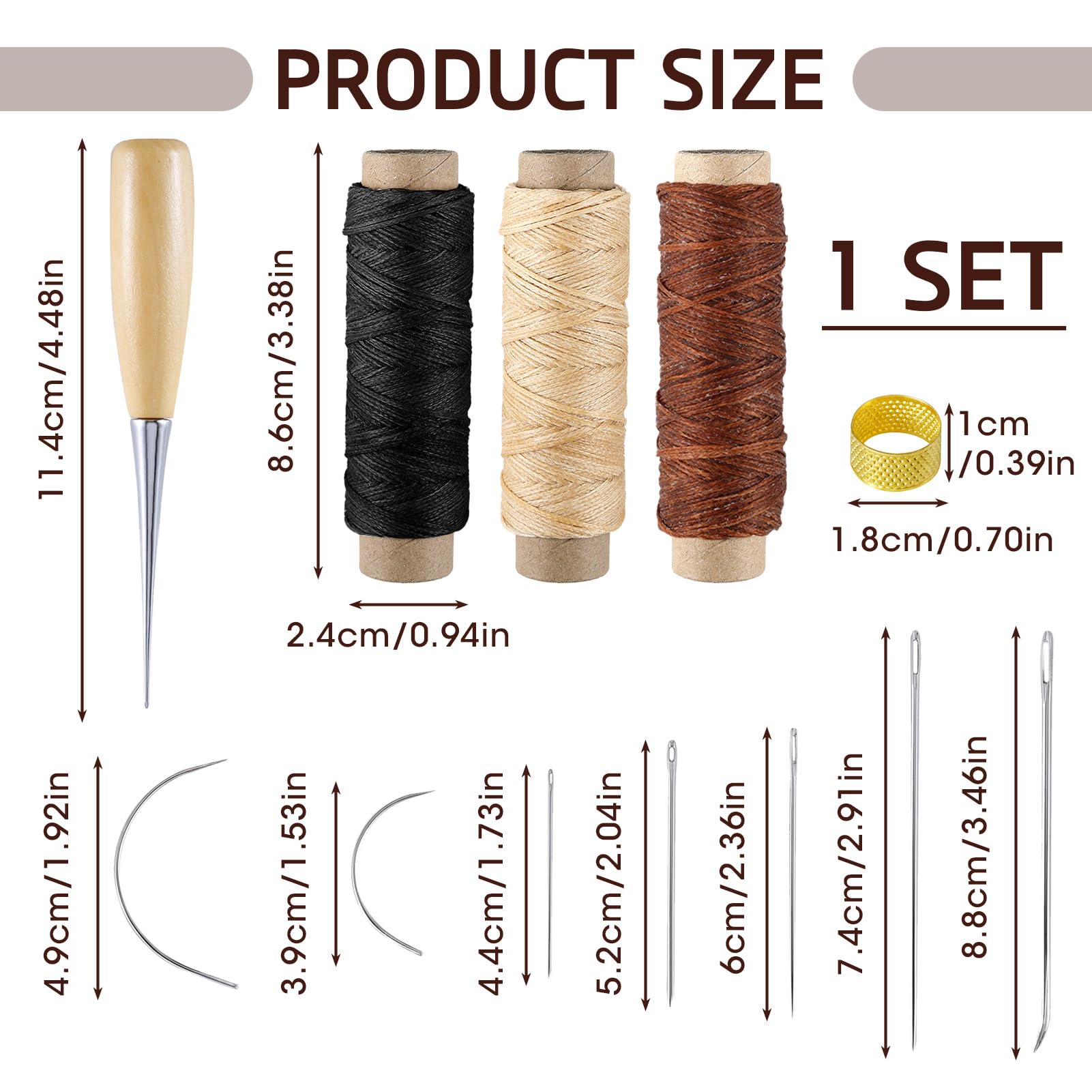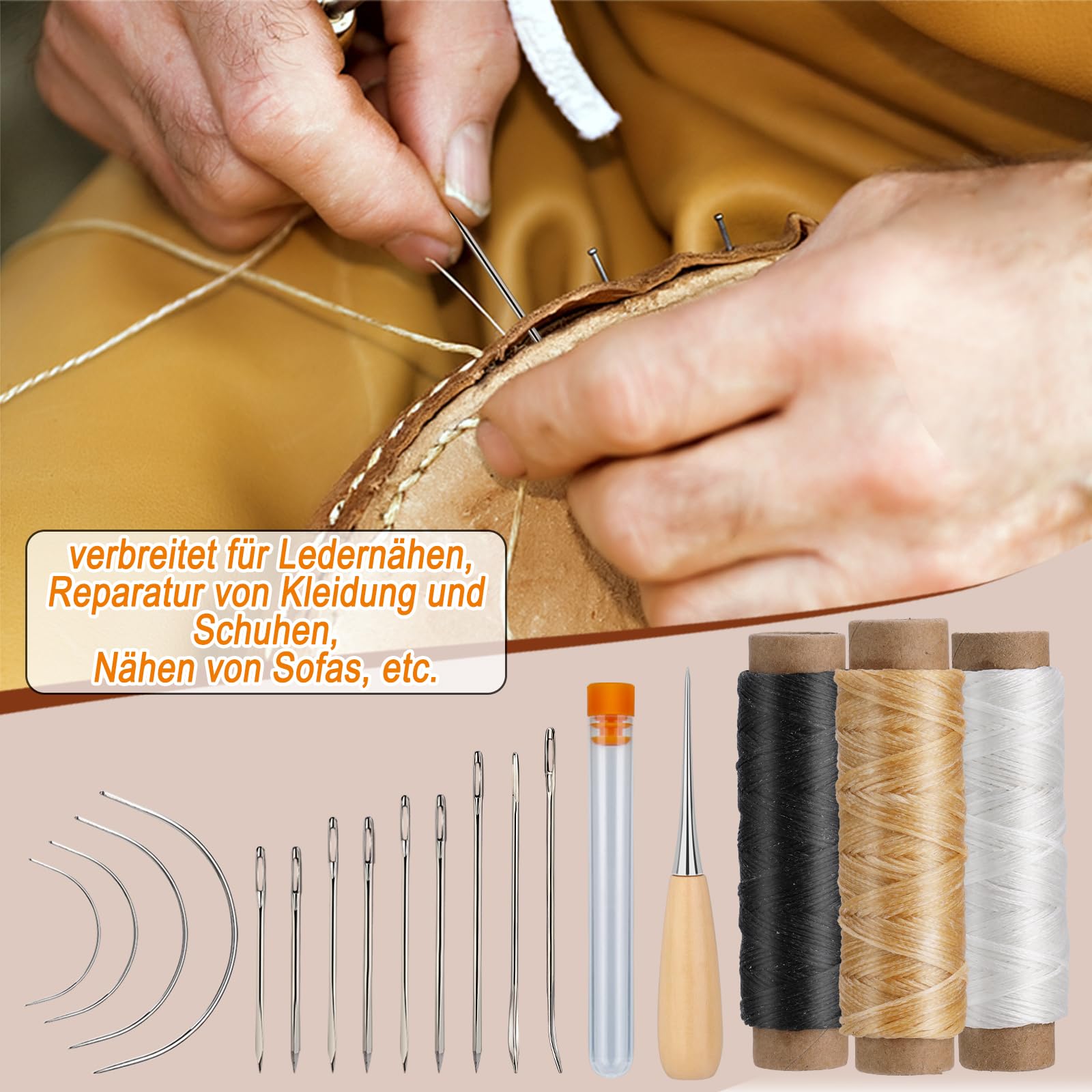 21-tlg. Leder Nähset Komplett | Mit Nadeln, Ahle, Wachsgarn & Fingerhut | Für Lederreparatur