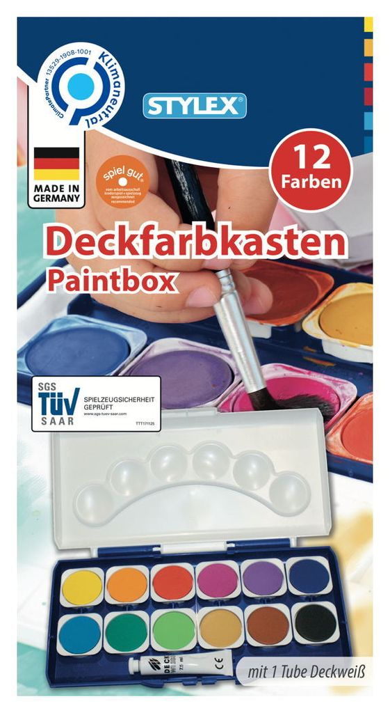 Alles für kleine Künstler! Dieser komplette Malkasten enthält 12 hochwertige Deckfarben in praktischen Näpfchen, plus eine extra Tube Deckweiß für besondere Effekte. Mit 10 verschiedenen Malpinseln in verschiedenen Stärken - perfekt für alle Maltechniken. Der abnehmbare Deckel mit großen Mischtöpfen wird zur praktischen Palette. Ideal für Schule, Kindergarten oder kreative Nachmittage zu Hause. Die Farben sind brilliant, deckend und wasserlöslich. Alles in einer Box - sauber und ordentlich. Achtung: Nicht für Kinder unter 3 Jahren geeignet wegen verschluckbarer Kleinteile. Macht Malen zum Erlebnis und fördert die Kreativität! Perfekt als Geschenk für Schulkinder oder junge Künstler.