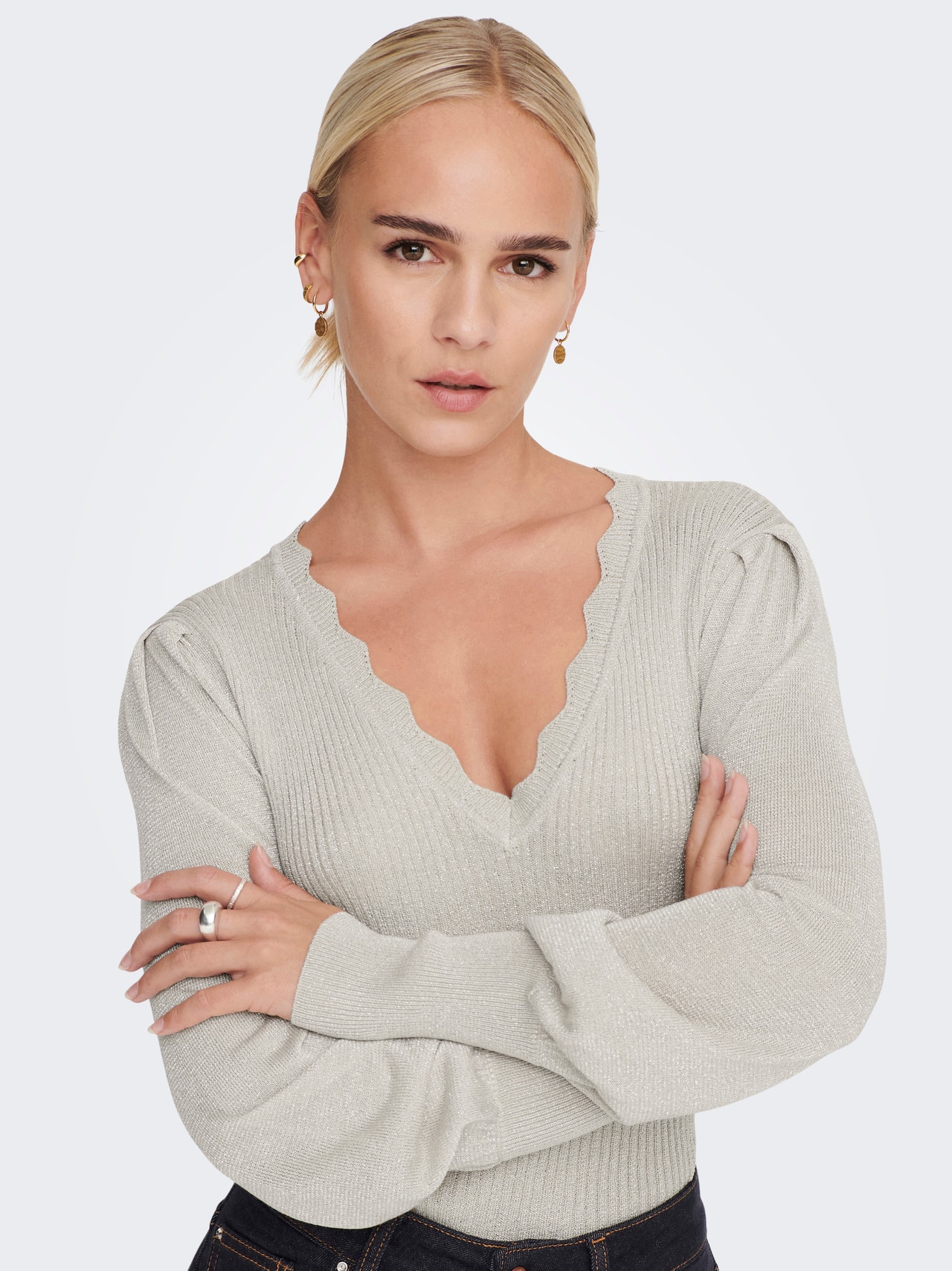 Damen Strickpullover V-Ausschnitt - Mit Puffärmeln Aus Nerz-Kaschmir