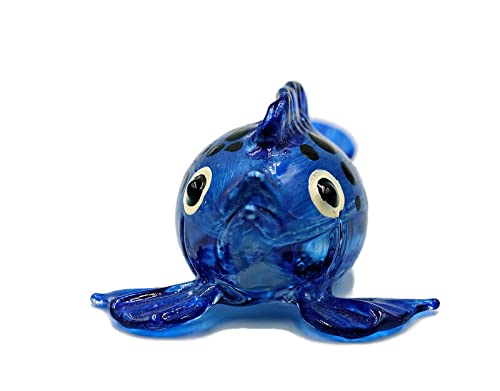 Glas Kugelfisch Blau Mit Punkten - Deko Figur Für Vitrine