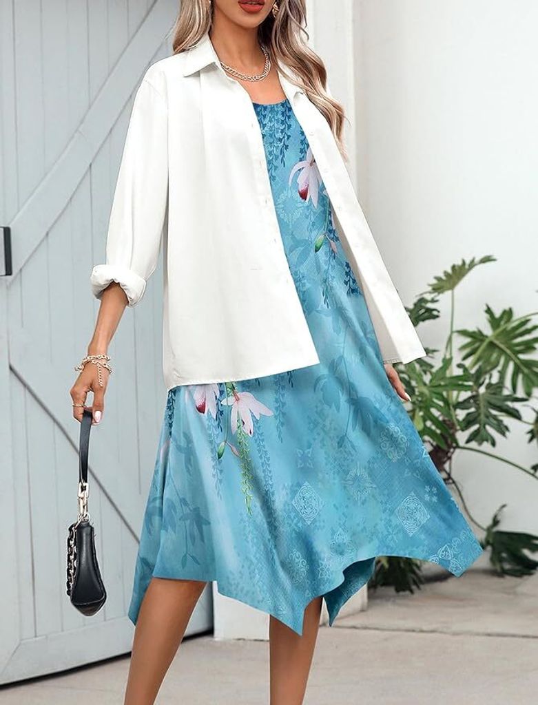 Die knielange Silhouette passt zu allem: Strandurlaub, Stadtbummel oder Abendspaziergang. Kombiniere es mit Sandalen und einem Strohhut für den perfekten Summer-Look! Bitte vorher die Größentabelle checken für die beste Passform. Ein Kleid, das du den ganzen Sommer tragen wirst!