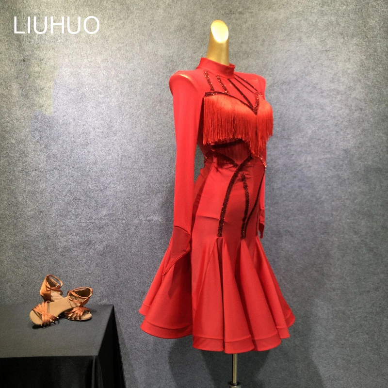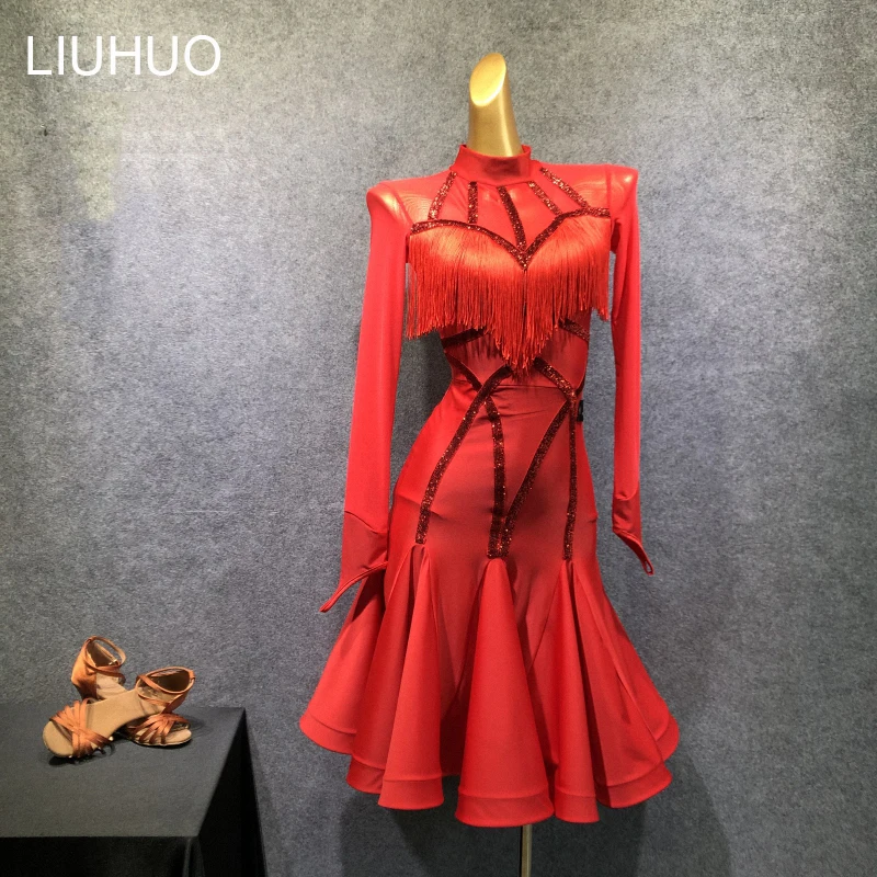 LIUHUO Damen Latin Dance Kleid Mit Quasten - Elegantes Tanzkleid Für Wettbewerbe
