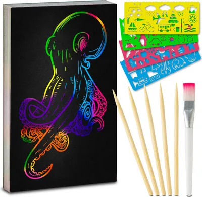Kratzbilder Set Für Kinder & Erwachsene - 16 Motive A4 Mit Regenbogenhintergrund - Inkl. 4 Werkzeuge & Bürste - Kreativset Für Zuhause & Unterwegs