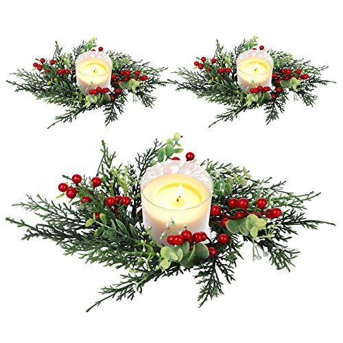 Diese süßen Kerzenringe bringen sofort Weihnachtsstimmung auf deinen Tisch! Mit 20cm Durchmesser und 7,5cm Innendurchmesser passen sie perfekt für die meisten Standardkerzen. Die kunstvollen Kränze sind mit roten Früchten, grünen Blättern und Tannenzapfen verziert - einfach festlich! Aus langlebigem Stoff und PVC gefertigt, verblassen die lebendigen Farben nicht. Perfekt für die Weihnachtstafel, Sideboard oder als Deko für Küchenschränke. Einfach eine Kerze in die Mitte stellen und schon hast du eine gemütliche Atmosphäre. Auch toll für Hochzeitsdekoration oder winterliche Einrichtung. Mach dein Zuhause weihnachtlich mit diesen charmanten Kränzen!