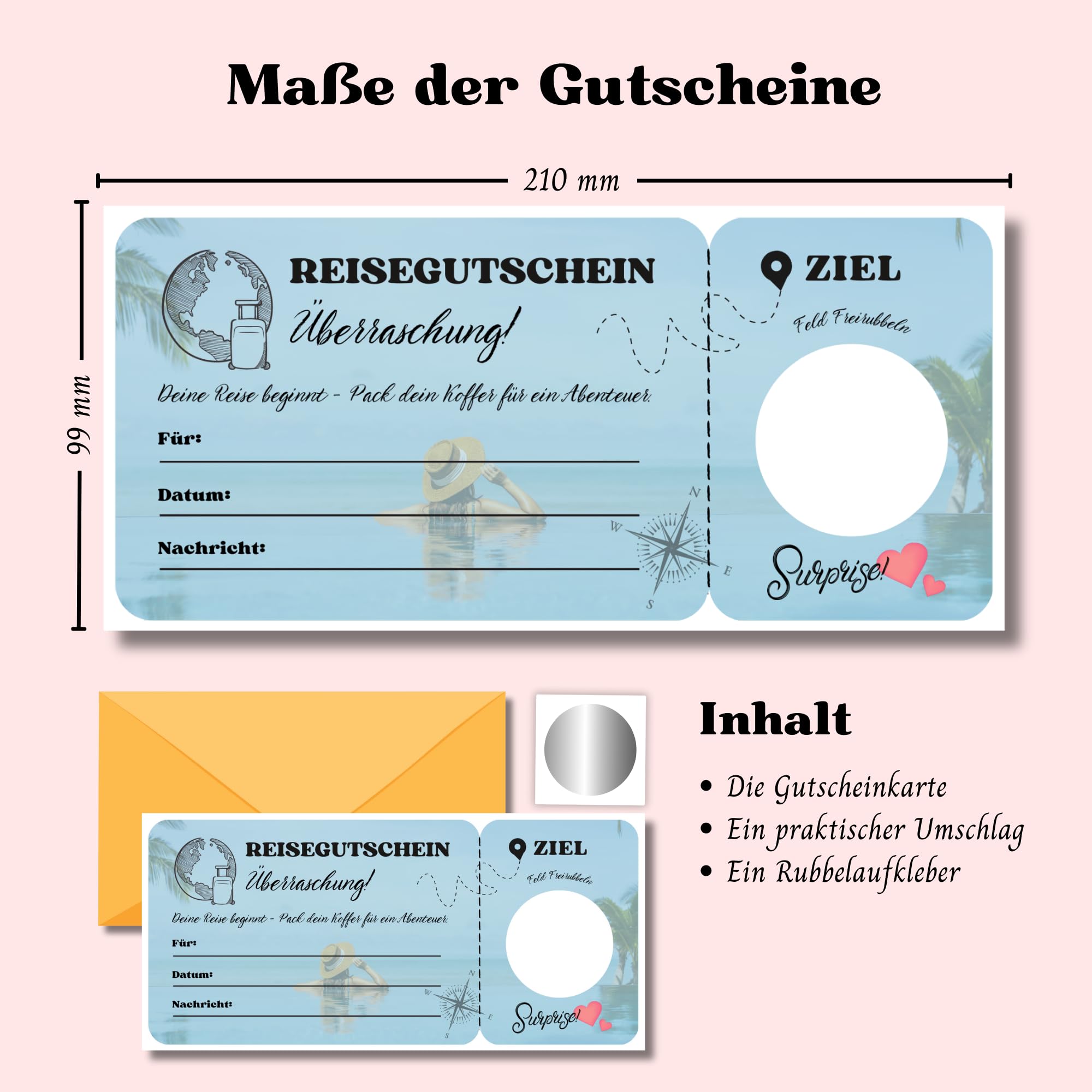 Die ultimative Überraschung für besondere Anlässe! Diese edlen Gutscheinkarten im Chrom-Platin Look mit Spiegeleffekt sind einfach genial. Einfach mit wasserfestem Stift deinen persönlichen Text auf die Spiegelfläche schreiben, das Rubbel-Etikett anbringen und schon ist die Überraschung perfekt! Die weiße Rückseite bietet Platz für weitere persönliche Worte. Im Set: 2x Gutscheinkarte, 2x Rubbel-Etikett und 2x platinfarbene Umschläge - alles komplett! Ideal für Kino-Besuche, gemeinsame Reisen, Restaurant-Gutscheine oder einfach quality time zusammen. Kommt super an bei Männern, Freunden, Kollegen oder Mitarbeitern. Die Karten sind DIN lang, sehr stabil und fühlen sich richtig hochwertig an. Der Spiegeleffekt sieht total edel aus und die Haptik ist einfach premium. Egal ob Geburtstag, Jubiläum oder einfach so - mit diesen Gutscheinen machst du immer eine gute Figur! Die Rubbelfelder lassen sich leicht freirubbeln und verraten das Geheimnis erst zum richtigen Zeitpunkt. Ein Geschenk, das garantiert Begeisterung auslöst und in Erinnerung bleibt!