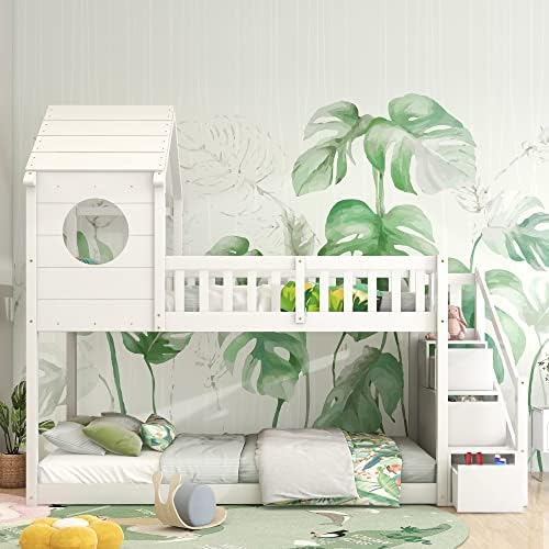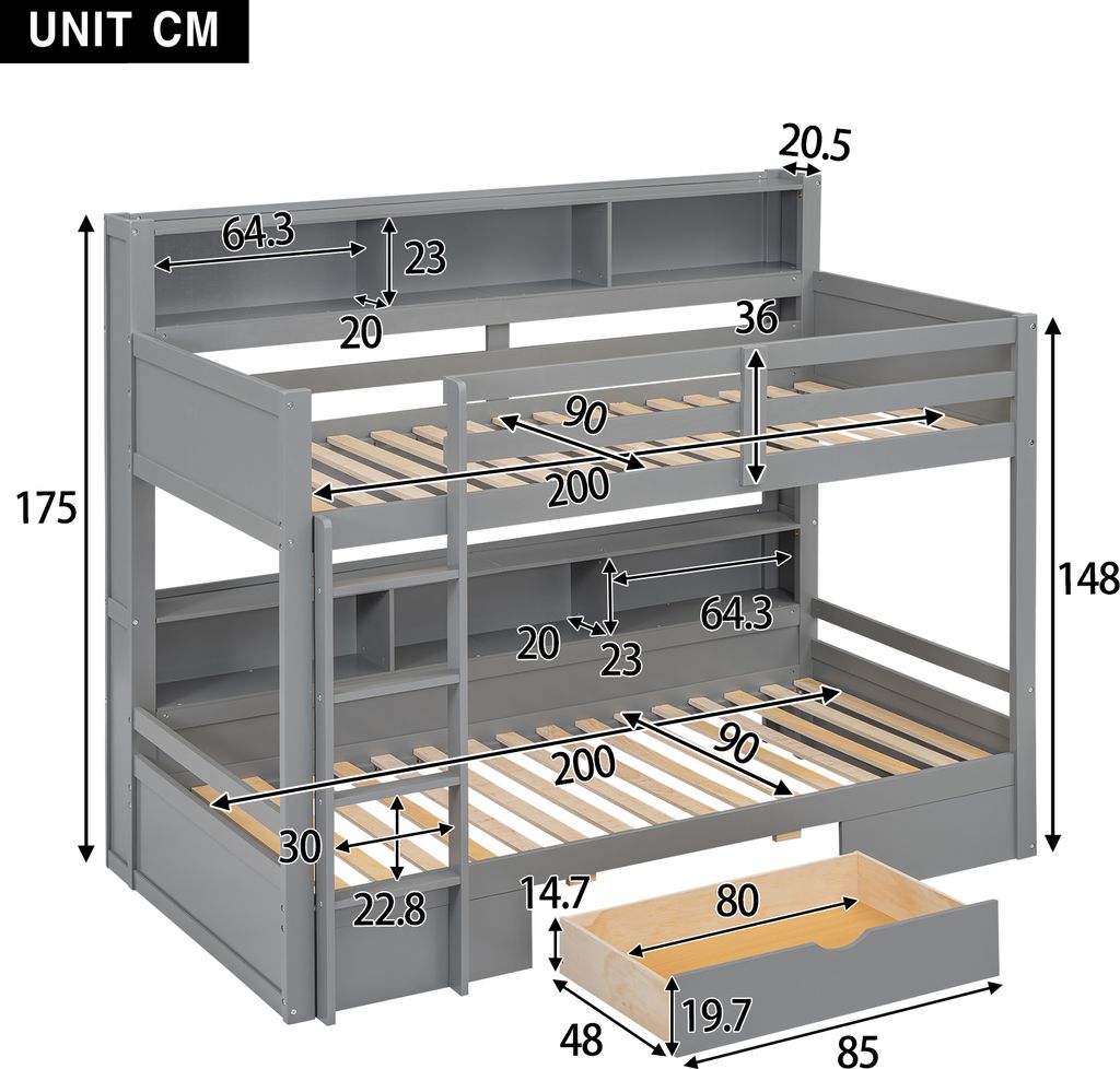 Boah, dieses Etagenbett ist der Traum für jedes Kinderzimmer! Oben 90x200cm, unten 140x200cm - passt für mindestens 2 Kinder. Mit super cooler Rutsche - macht richtig Spaß! Zwei große Schubladen unter dem Bett und Staufächer in der Leiter - genug Platz für Spielzeug und Kleidung. Aus stabilem Kiefernholz und MDF - hält was aus. Oben 150kg, unten 200kg Belastbarkeit - auch für Erwachsene geeignet. Mit Schutzgeländer oben für maximale Sicherheit. Wird in 4 Paketen geliefert (können an verschiedenen Tagen ankommen!) und muss zusammengebaut werden. Perfekt um Platz zu sparen und den Kindern trotzdem genug Spiel- und Stauraum zu bieten. Einfach mal bestellen - deine Kinder werden begeistert sein!