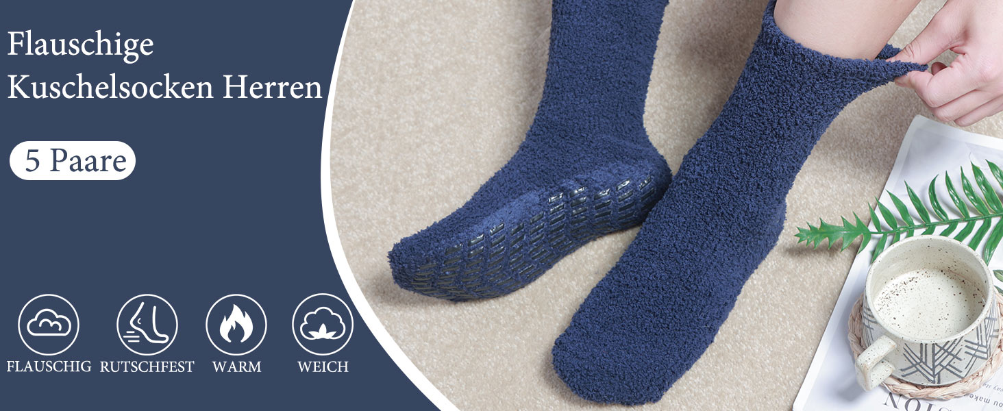 Wohlfühlmoment für deine Füße! Diese BLURBE Kuschelsocken sind wie eine warme Umarmung an kalten Tagen. Das kuschelige Kaschmir-Innenfutter hält deine Füße mollig warm, während die rutschfeste Sohle mit Silikon-Noppen für sicheren Halt auf glatten Böden sorgt. Das dehnbare Obermaterial aus Acryl passt sich jeder Fußform an und ist dabei super leicht und atmungsaktiv. Einfach reinschlüpfen und den Komfort genießen - ob beim gemütlichen Fernsehabend, beim Homeoffice oder beim Frühstück am Wochenende. In verschiedenen Größen erhältlich, finden sowohl Damen als auch Herren das passende Modell. Das ideale Geschenk für alle, die es gemütlich lieben!