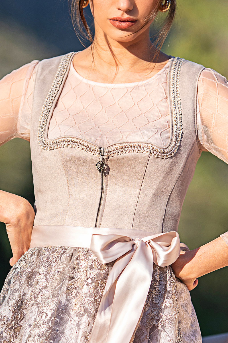Bereit fürs Oktoberfest und andere festliche Anlässe? Dieses wunderschöne Dirndl in Fernblau mit zarten Blumenmustern macht dich garantiert zum Blickfang! Das 2-teilige Set besteht aus Kleid und passender Schürze - nur die Bluse, Kette und der Gürtel sind nicht enthalten, die kannst du nach deinem Geschmack kombinieren. Mit seiner Midi-Länge von etwa 100 cm (je nach Größe) sitzt das Dirndl perfekt und betont deine Figur auf elegante Weise. Die Größentabelle hilft dir bei der Auswahl: Von Größe 34 (Brustumfang 84 cm) bis 46 (Brustumfang 108 cm) ist für jede Frau das Richtige dabei. Hergestellt mit viel Liebe zum Detail, überzeugt dieses Trachtenkleid durch seine qualitative Verarbeitung und das bezaubernde Design. Egal ob auf dem Wiesn, dem Gartenfest, Geburtstagen oder anderen Feiern - in diesem Dirndl fühlst du dich nicht nur authentisch bayerisch, sondern einfach umwerfend! Ein Kleidungsstück, das garantiert Komplimente erntet und das du noch Jahre lang tragen wirst.