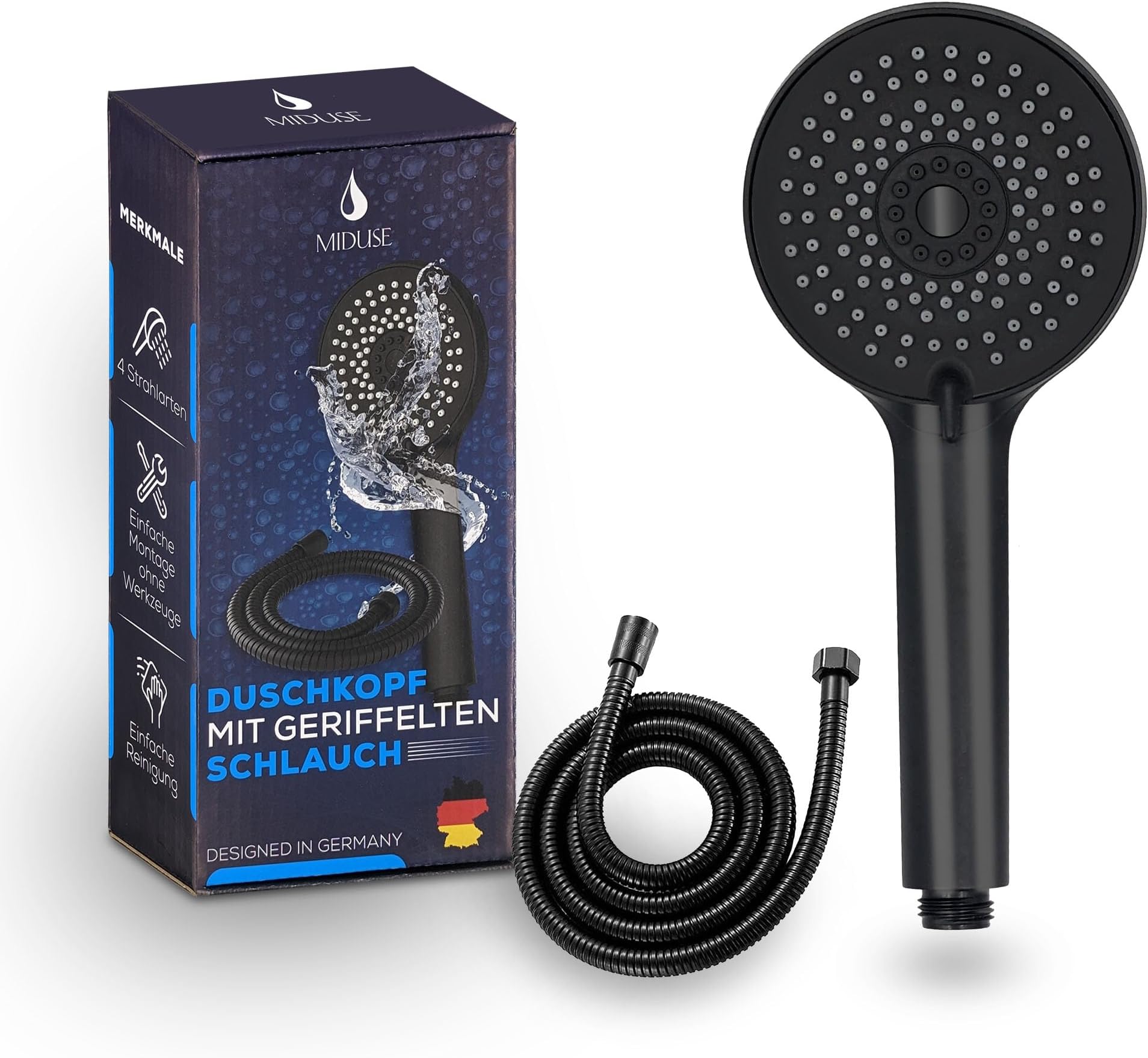 Duschvergnügen der Extraklasse! Dieser FASDUNT Duschkopf mit 2m Schlauch bringt Spaß zurück unter die Dusche. Mit 3 Sprühfunktionen - Regen, Massage oder beides kombiniert. Besonders wassersparend mit nur 9,5L/min, spart bis zu 40% Wasser und Kosten. Die Silikondüsen verstopfen nicht und sind leicht zu reinigen. Einfache Montage an jede Standard-Armatur. Für ein erfrischendes Duscherlebnis jeden Tag!