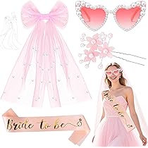 Hey Braut-to-be! Dieses süße 4-teilige Accessoire-Set macht deinen Junggesellinnenabschied unvergesslich. Enthalten ist alles, was du für den perfekten Braut-Look brauchst: ein romantischer Schleier mit Perlen, eine herzförmige Sonnenbrille, eine glänzende Schärpe und ein 'Bride to be' Stirnband.\\n\\nDie Materialien sind richtig hochwertig - weicher Chiffon, glänzende Seide und stabiler Kunststoff. Alles sitzt perfekt und fühlt sich toll an. Ob einzeln oder zusammen getragen, du wirst der Star der Party sein!\\n\\nSuper nicht nur für den JGA, sondern auch für die Hochzeitsfotos, Mottopartys oder einfach als lustiges Geschenk für die beste Freundin. In hübscher Verpackung - ideal zum Verschenken.\\n\\nMach deine Vorhochzeitsfeier zu etwas Besonderem und lass dich gebührend feiern. Denn du hast es dir verdient, im Rampenlicht zu stehen!