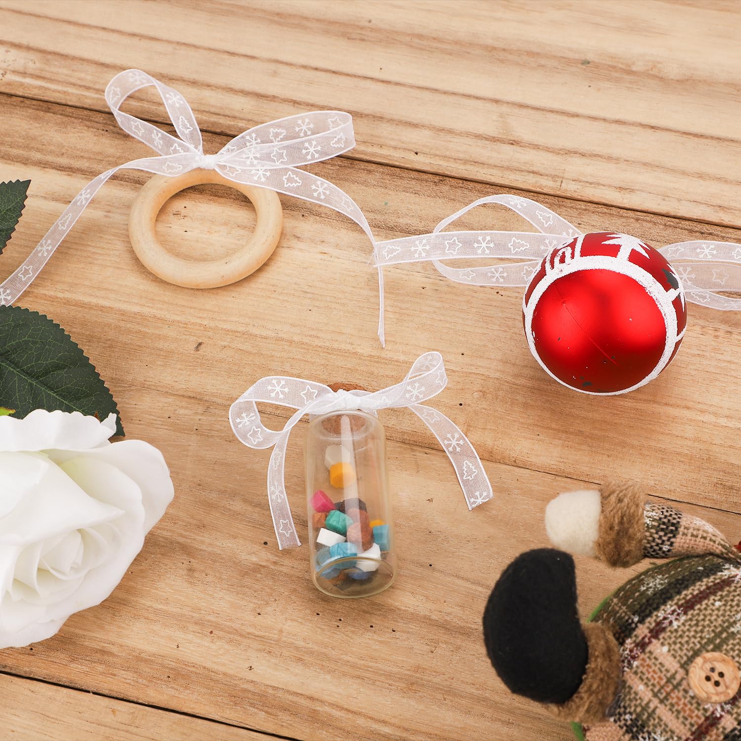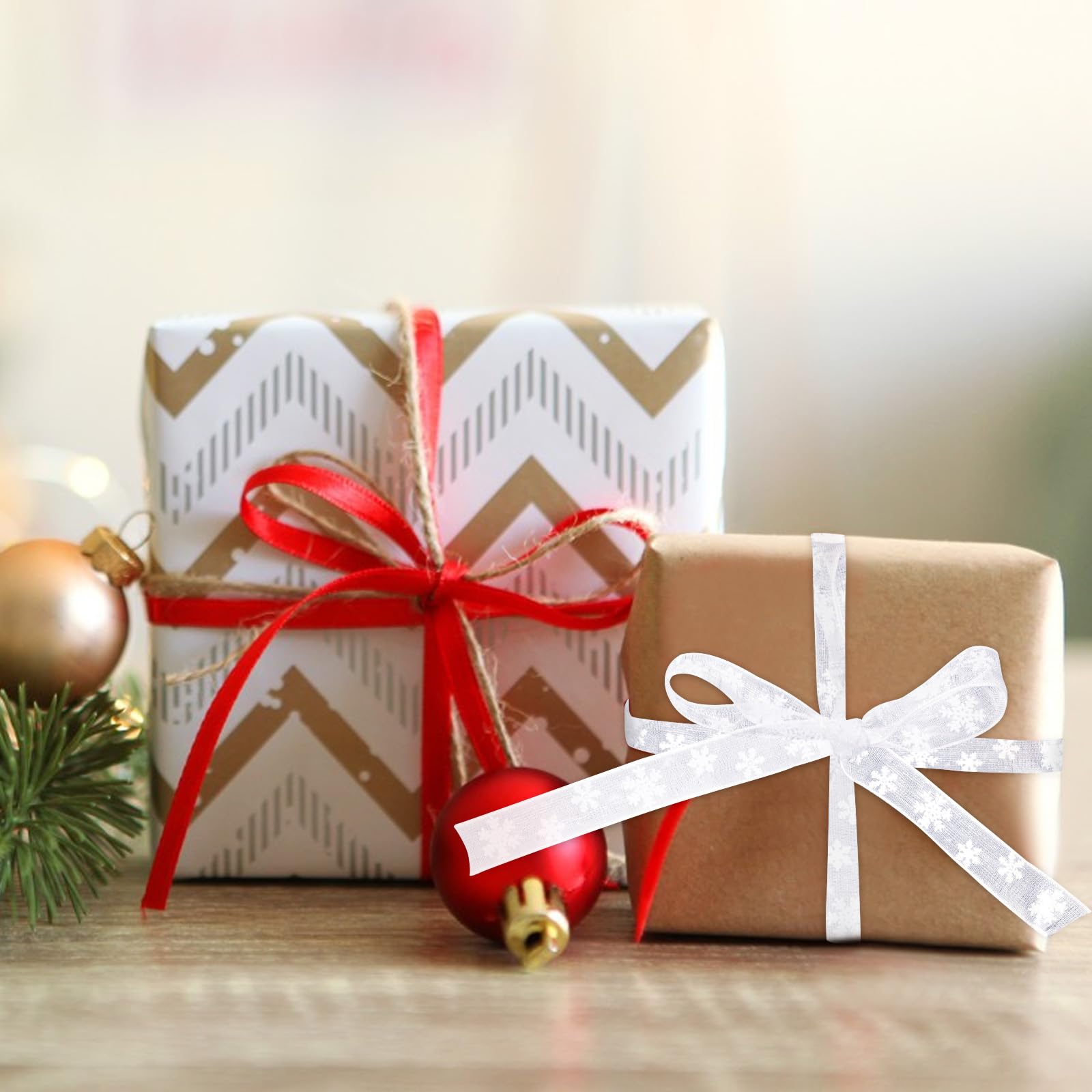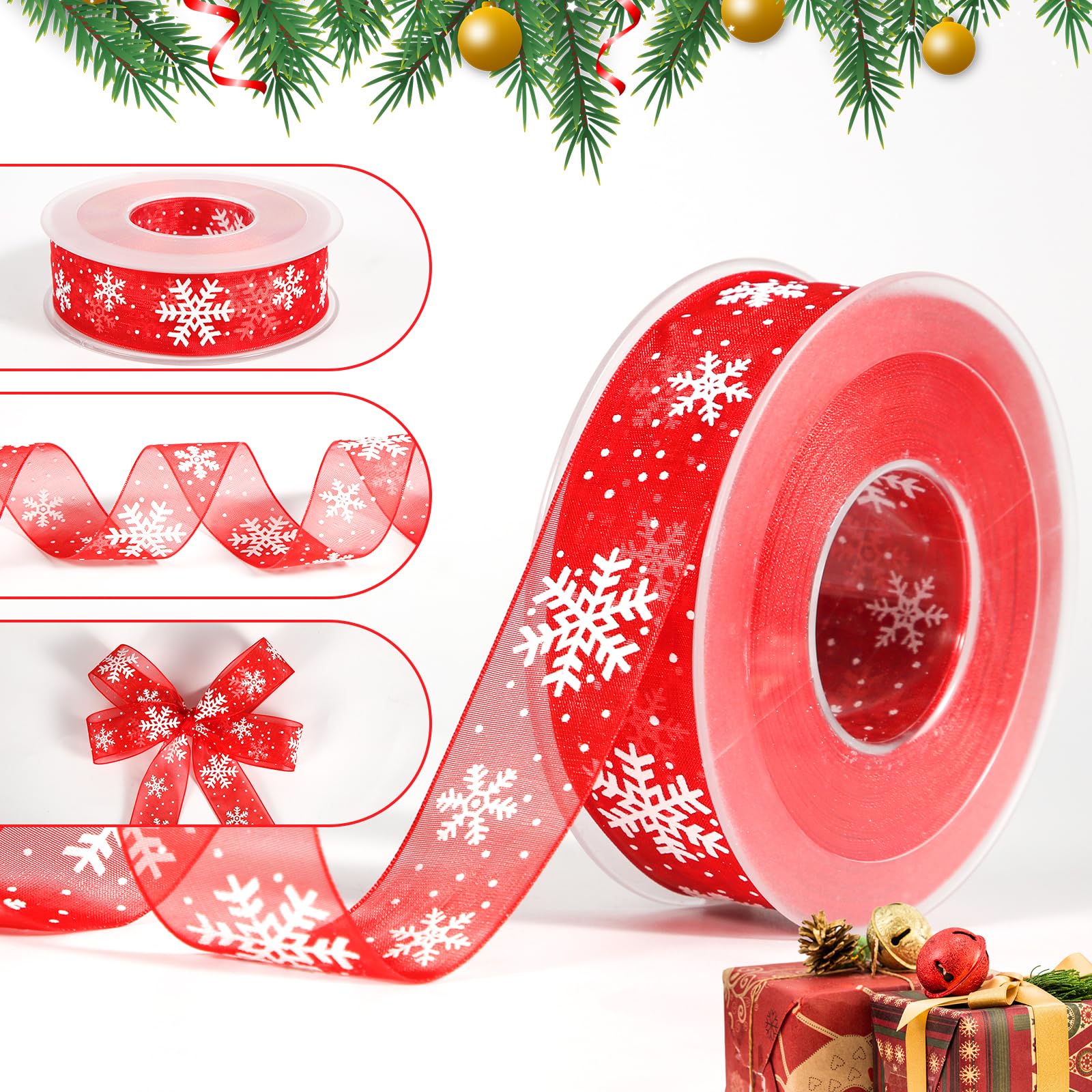 AIEX Weihnachtsband Mit Schneeflocken | 20m X 10mm Weißes Geschenkband | Für Geschenke & Weihnachtsdekoration