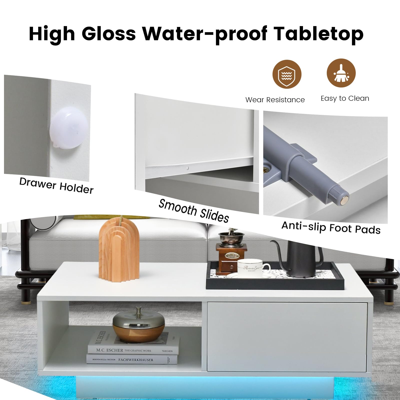 LED Couchtisch Mit Schublade & USB - Moderner Wohnzimmertisch In Weiß