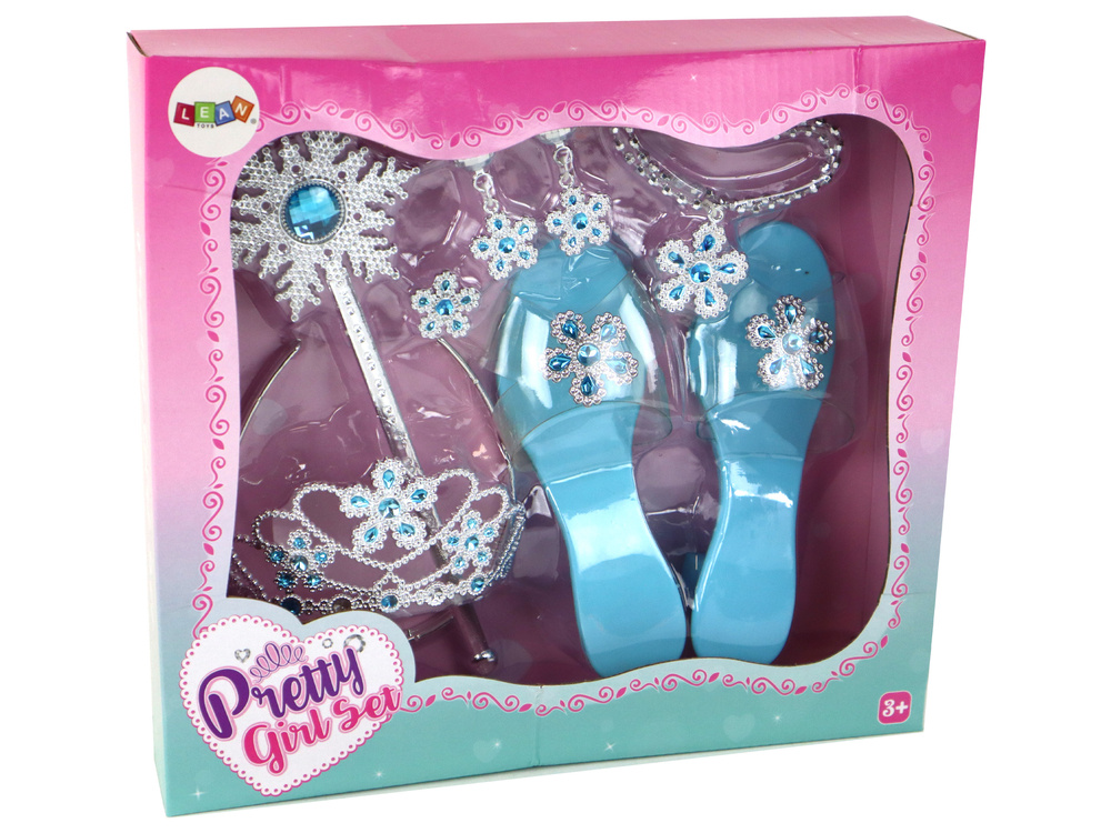 Verwandle dein Kind in eine echte Prinzessin! Dieses zauberhafte Spielset bringt Kinderaugen zum Leuchten. Enthalten ist alles, was kleine Prinzessinnen brauchen: ein Paar magische Schuhe, eine funkelnde Krone, eine elegante Halskette, bezaubernde Ohrringe und einen praktischen Aufbewahrungsbeutel.