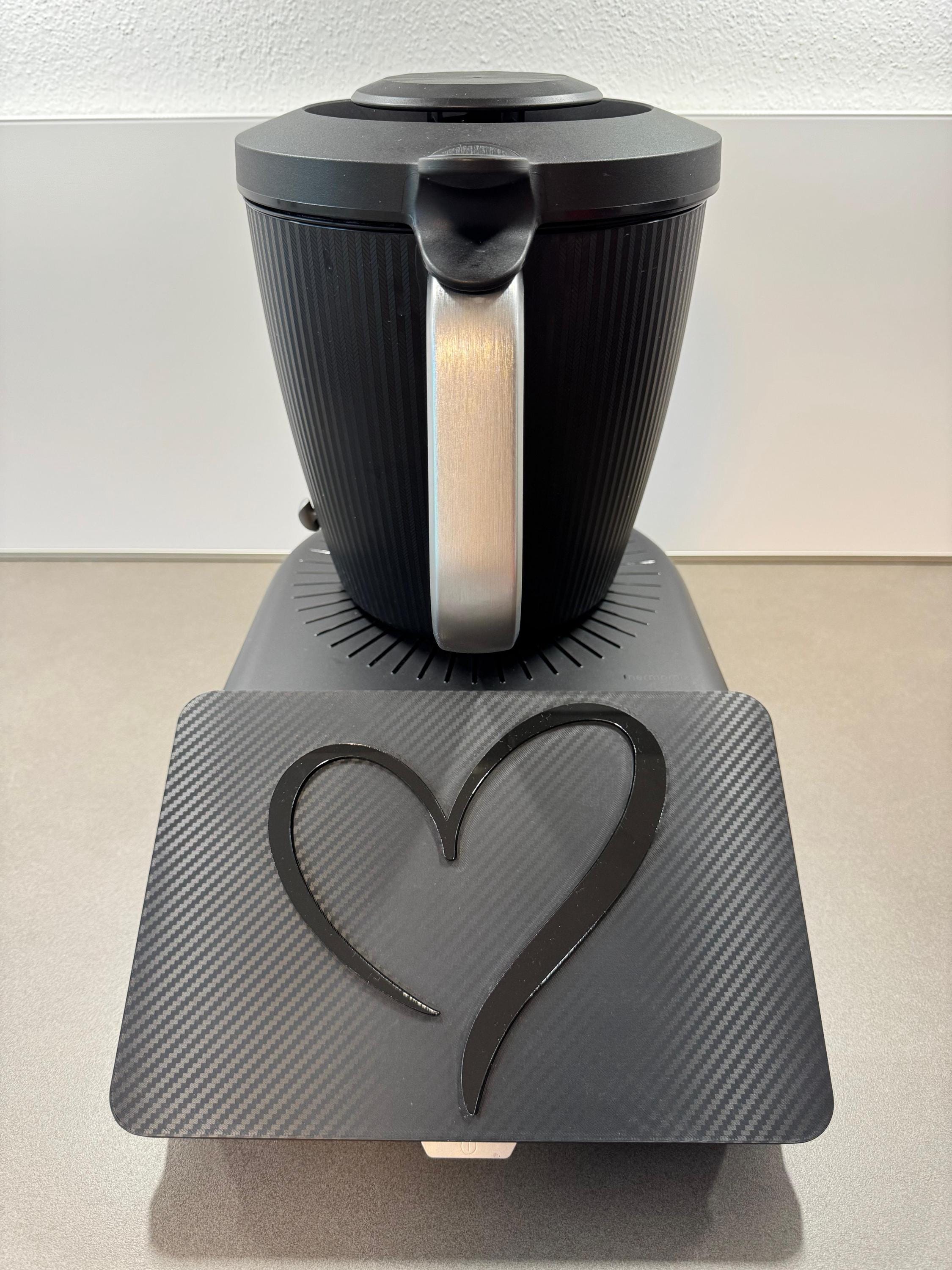 Schütz deinen Thermomix TM7 in Style! Diese passgenaue Displayabdeckung wird im 3D-Druck hergestellt und schützt das empfindliche Touchdisplay vor Kratzern, Spritzern und Staub. Das coole Feature: Integrierte Spatelhalterung! So hast du dein Rührwerkzeug immer griffbereit und ordentlich. Aus biobasiertem PLA-Material (Maisstärke) - nachhaltig und langlebig. Einfach aufstecken, kein Druck aufs Display. Leicht zu reinigen unter warmem Wasser. Tolle Geschenkidee für alle Thermomix-Fans! Wichtig: Dies ist kein Original von Vorwerk, sondern praktisches Zubehör. In elegantem Schwarz mit Herz-Detail - schön und funktional!