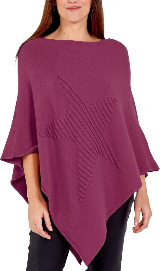 Damen Poncho Mit Sternen-Muster - Weicher Cape-Schal Für Winter Aus Italienischem Strick