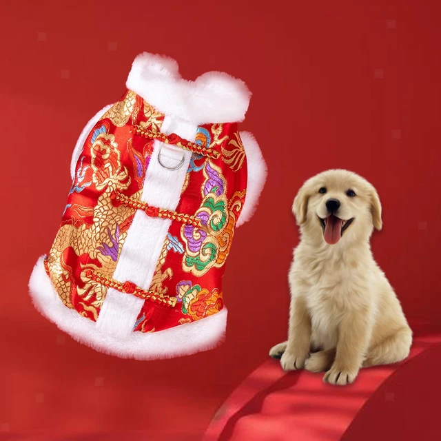 Chinesische Hundekleidung Rot - Festlicher Hundemantel Mit Stickerei Für Neujahr & Feiertage - Größen XS Bis XL