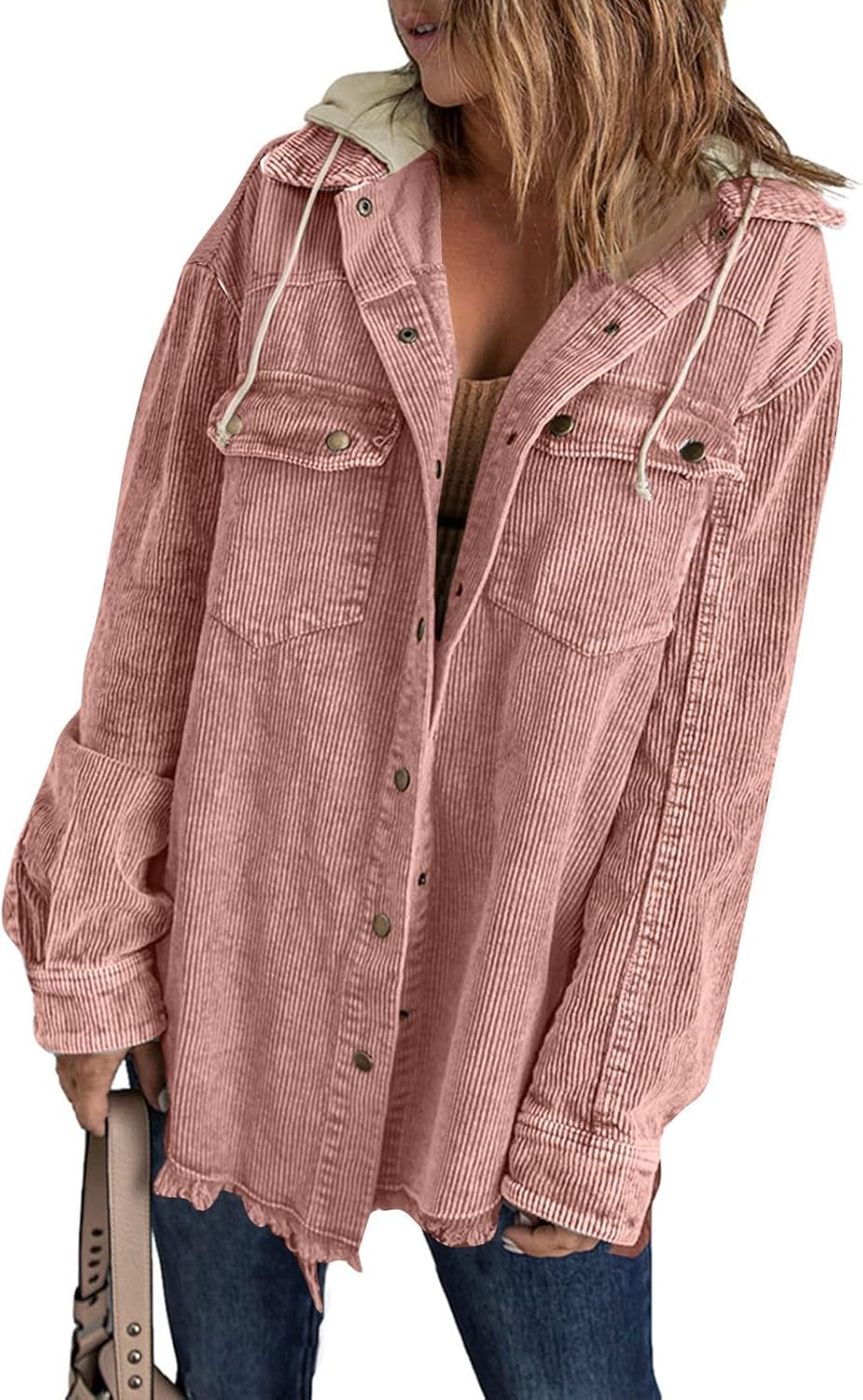 Cordjacke Damen Oversize Mit Taschen - Leichte Übergangsjacke Für Herbst & Sommer