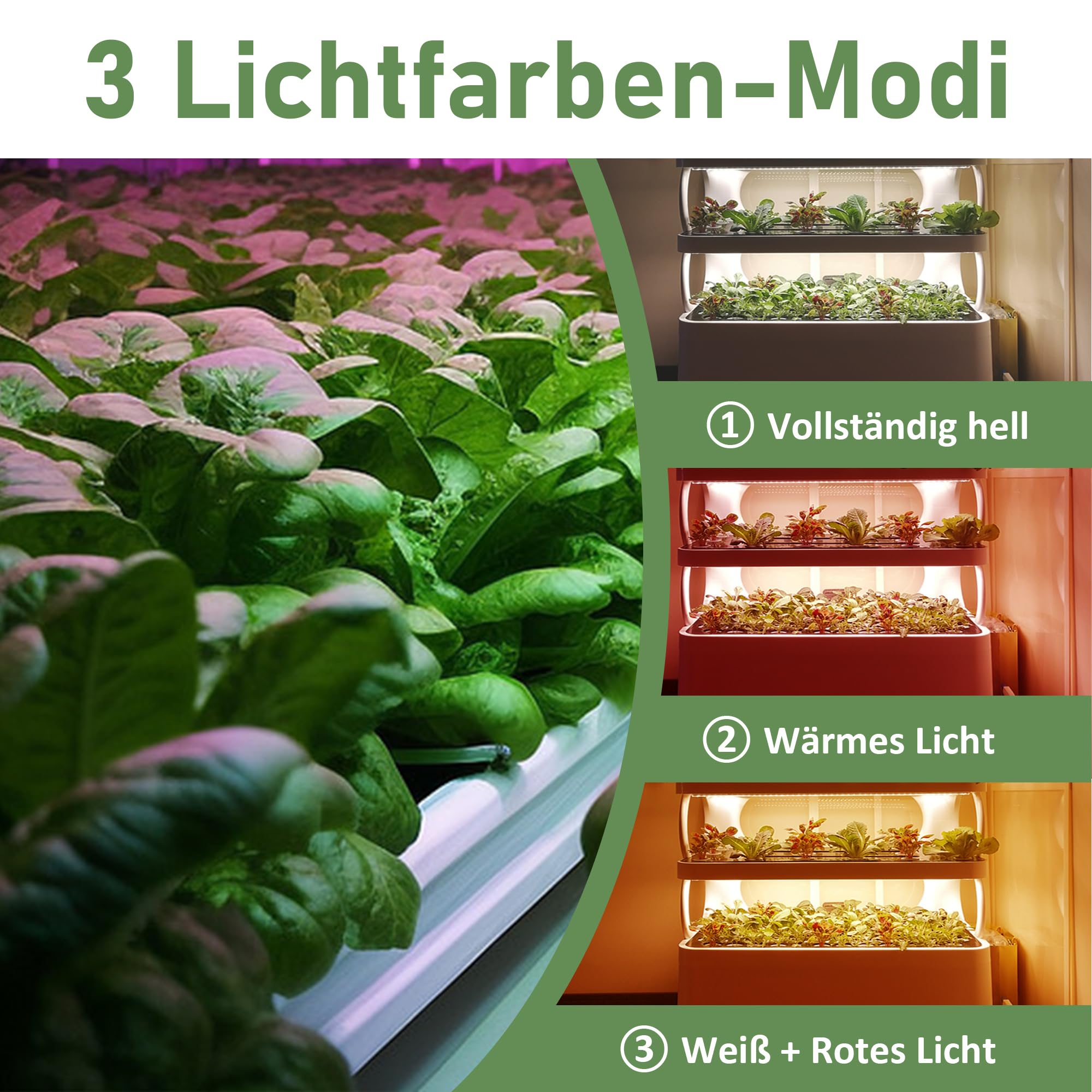 Drei Lichtmodi und 10 Dimmstufen (10-100%) lassen sich individuell anpassen. Ob für die Keimung, das Wachstum oder die Blüte - hier findest du die optimale Einstellung.