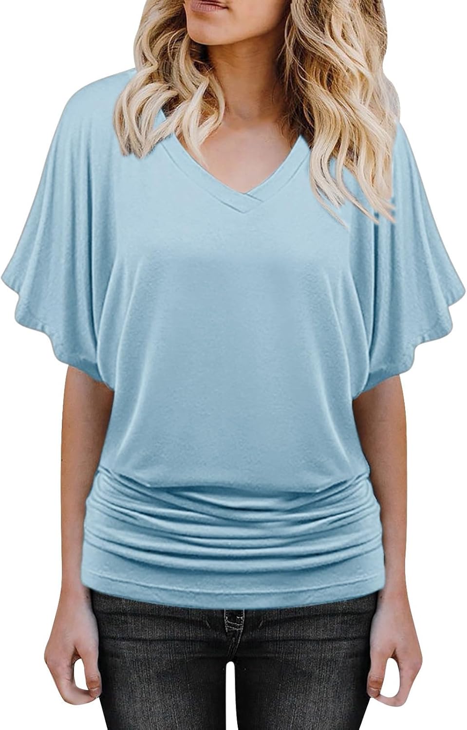 Oversized Bluse Damen Mit V-Ausschnitt & Fledermausärmeln - Leichte Sommer Tunika In Einfarbig