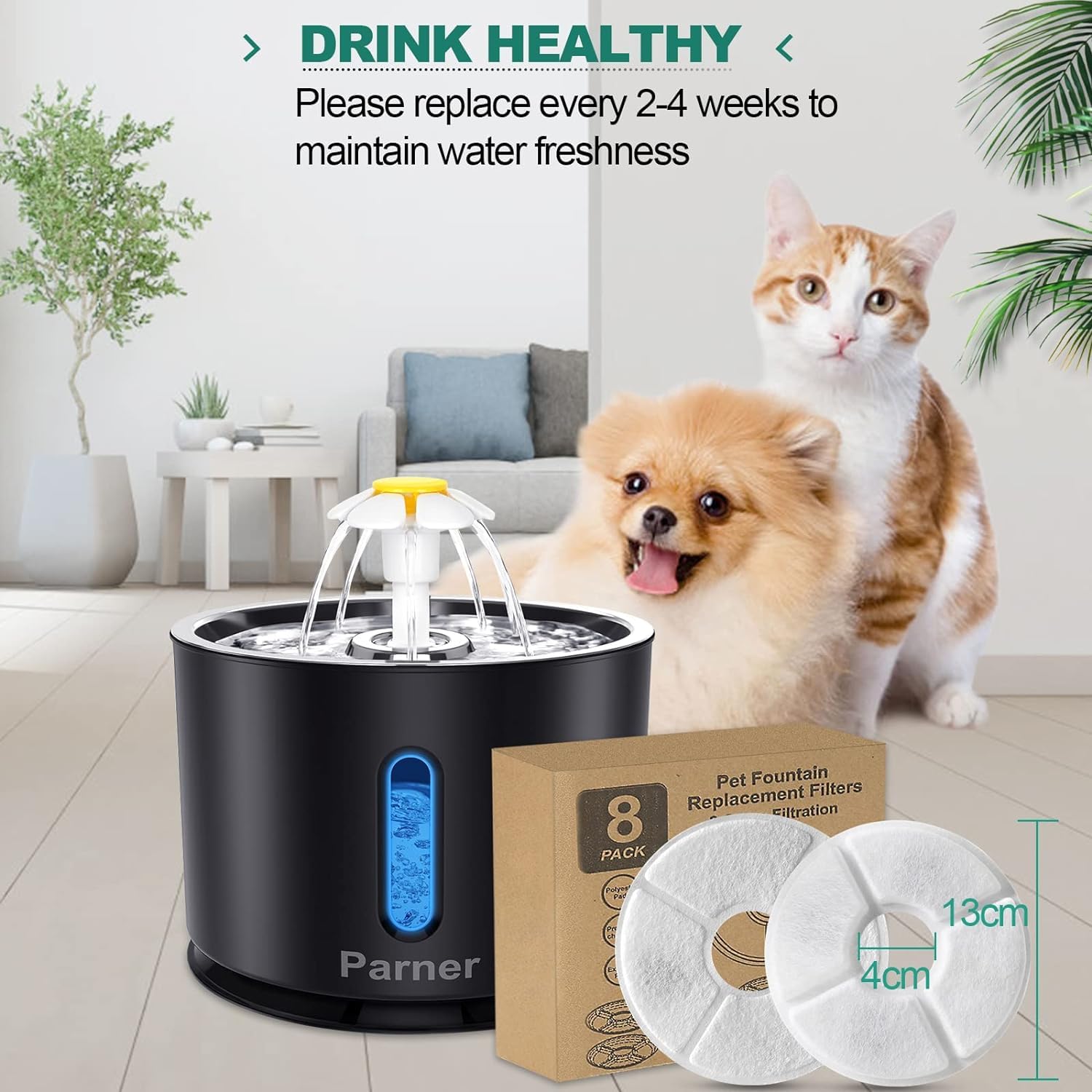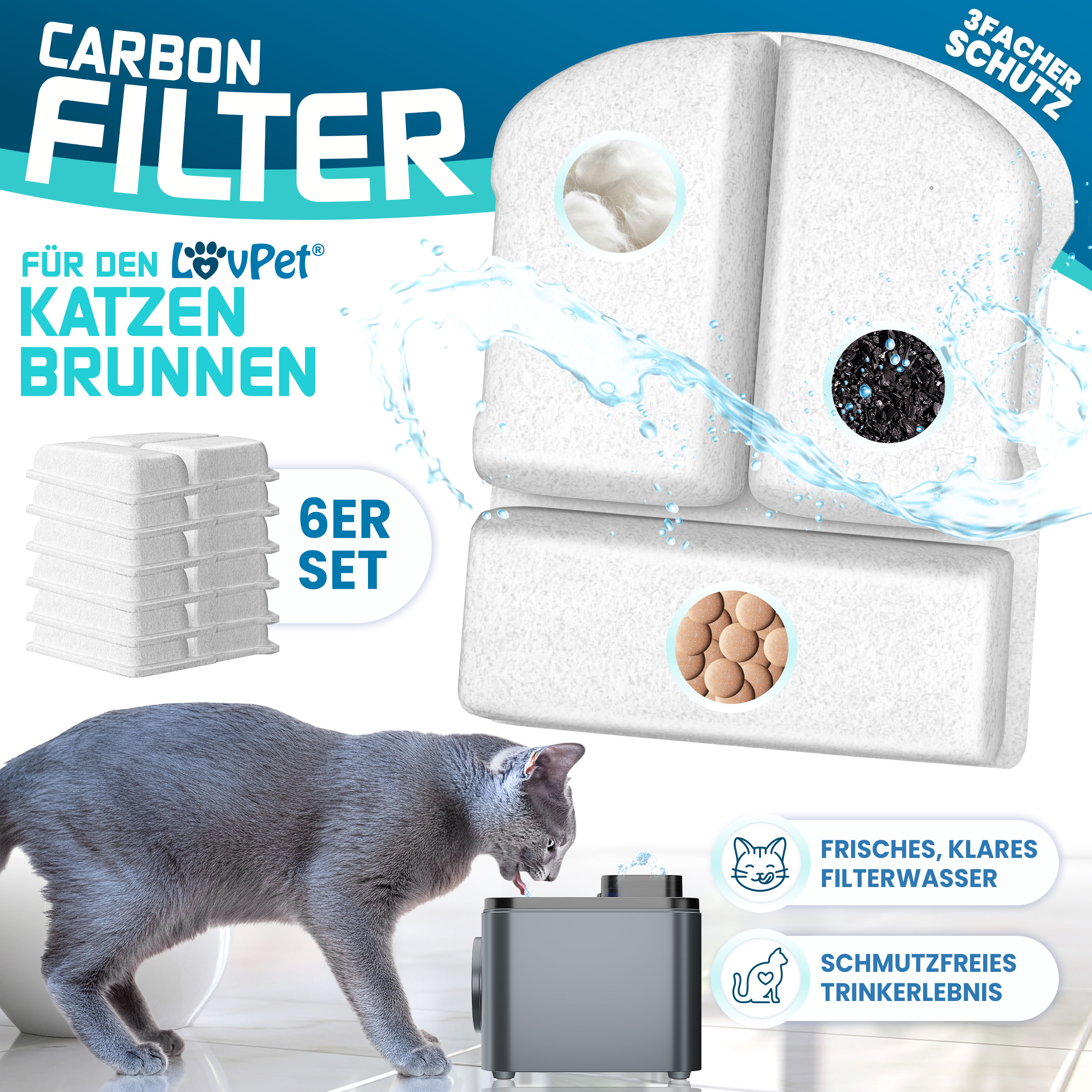 Katzenbrunnen Filter Ersatz - Aktivkohlefilter Mit Vorschwamm Für Trinkbrunnen