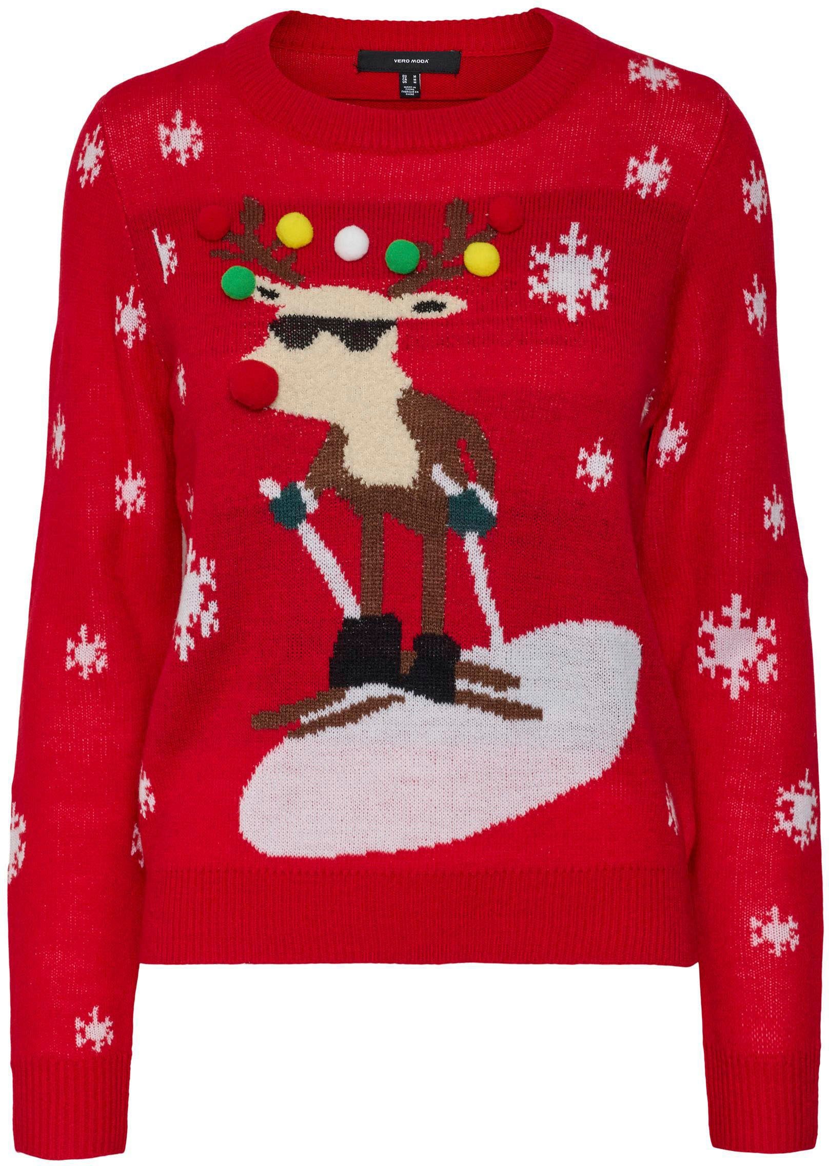 Weihnachtspullover Damen Mit Wein Glas Design | Lustiger Winterpullover | Größen S-2XL | Roter Weihnachts Pulli
